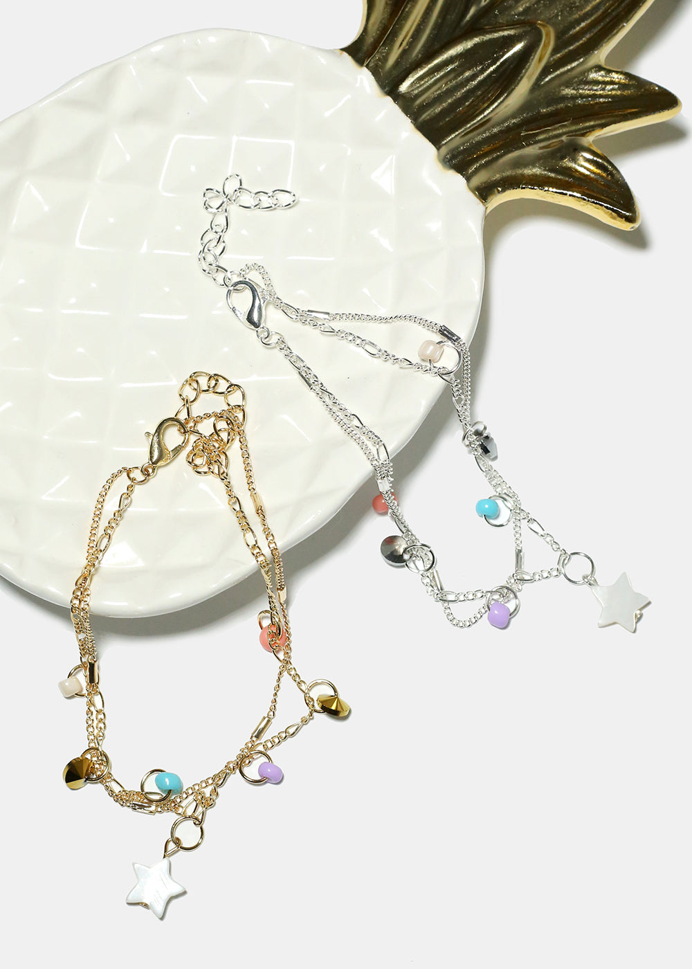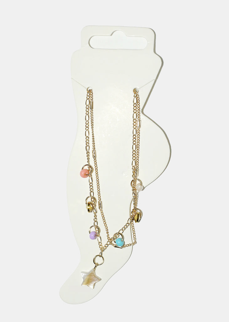 Get this super cute starts and beads chain anklet! Elevate any look with this colorful and stylish jewelry piece!