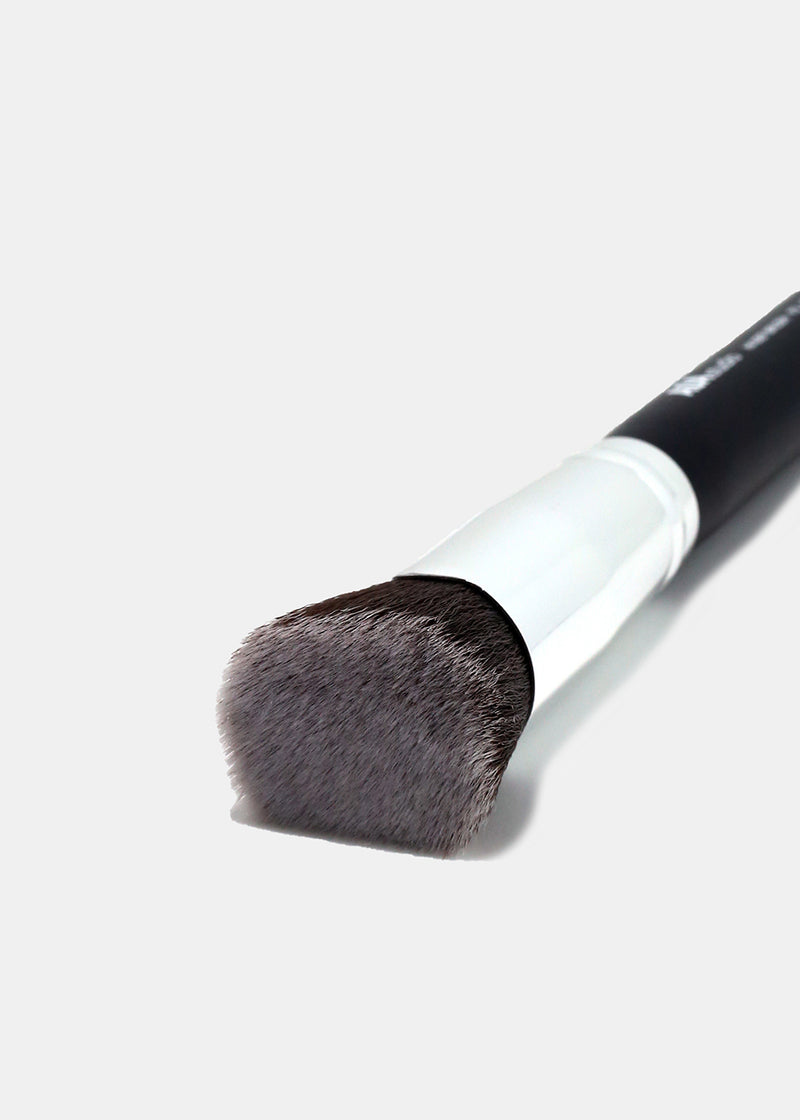 The perfect bronzer brush. but also applies blush, foundation, and even concealer effortlessly. The flat angle slant of the bristles forms a chiseled edge, ideal for sculpting & contouring.