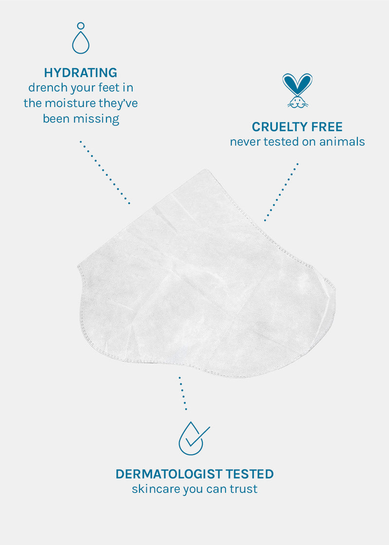 3. RELAX Massage feet through the mask socks. Relax + enjoy for 10-20 minutes; remove + discard.