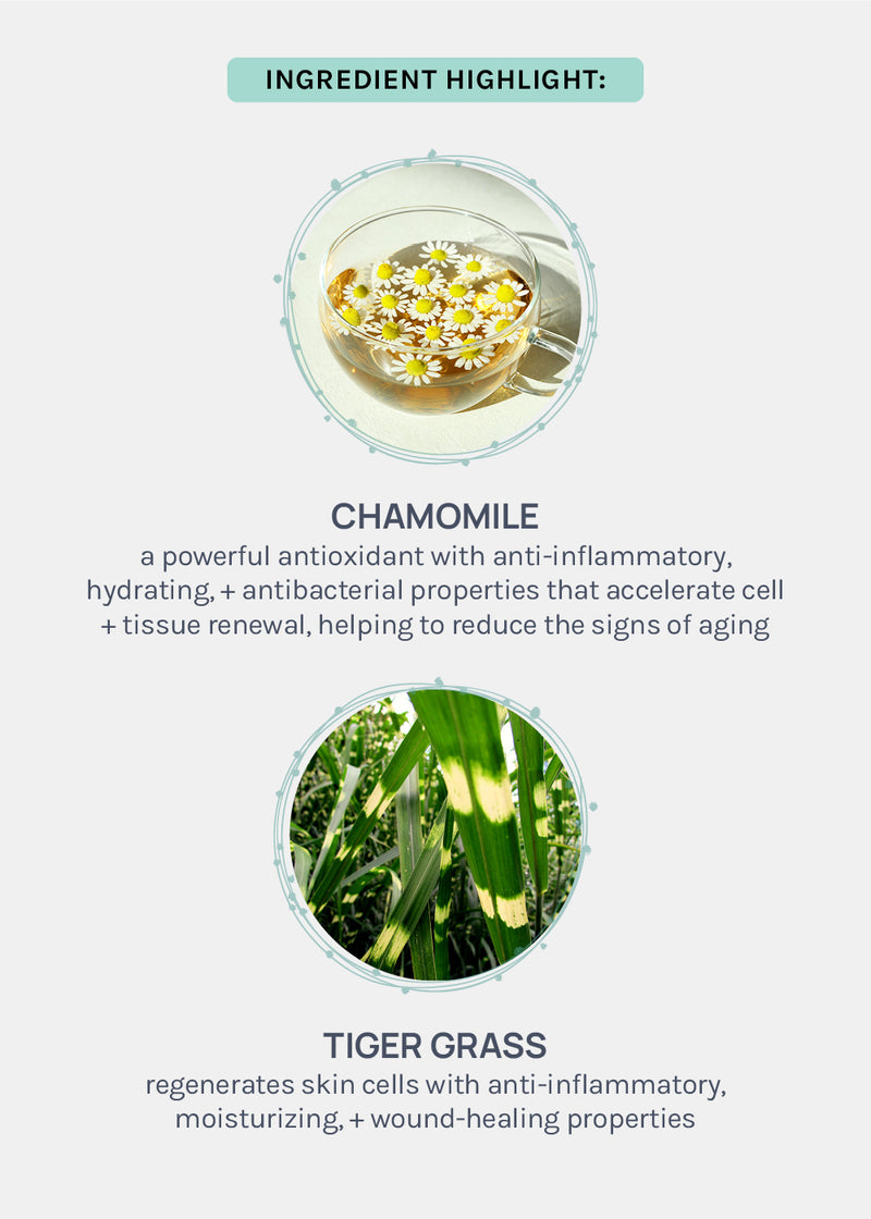 Tiger Grass // regenerates skin cells with anti-inflammatory, moisturizing, + wound-healing properties.