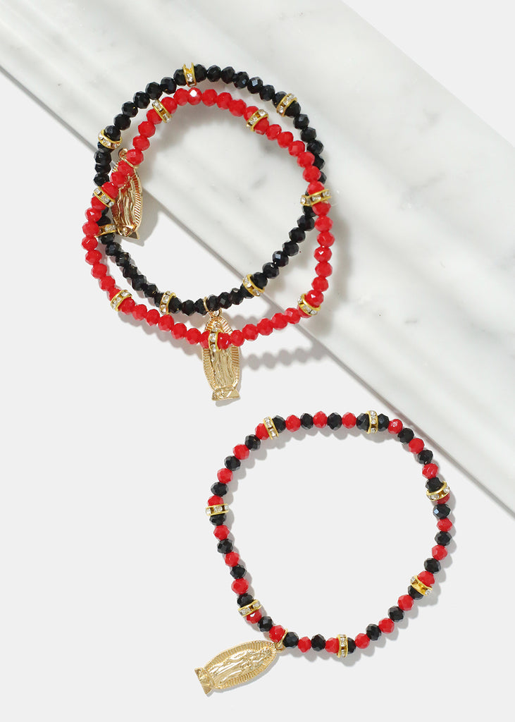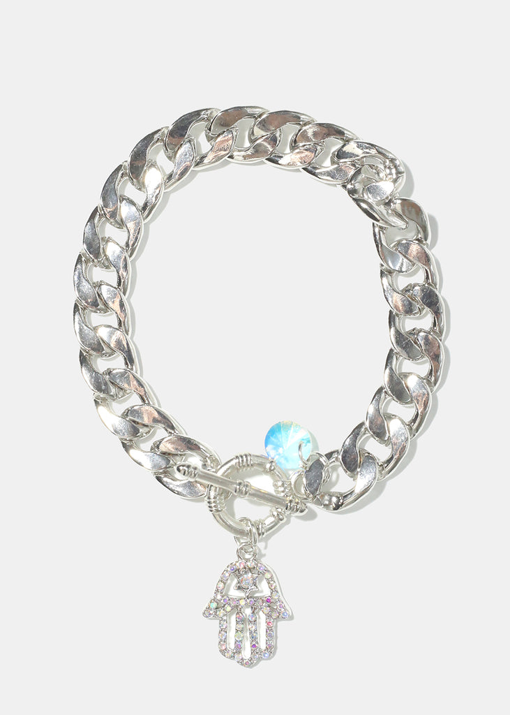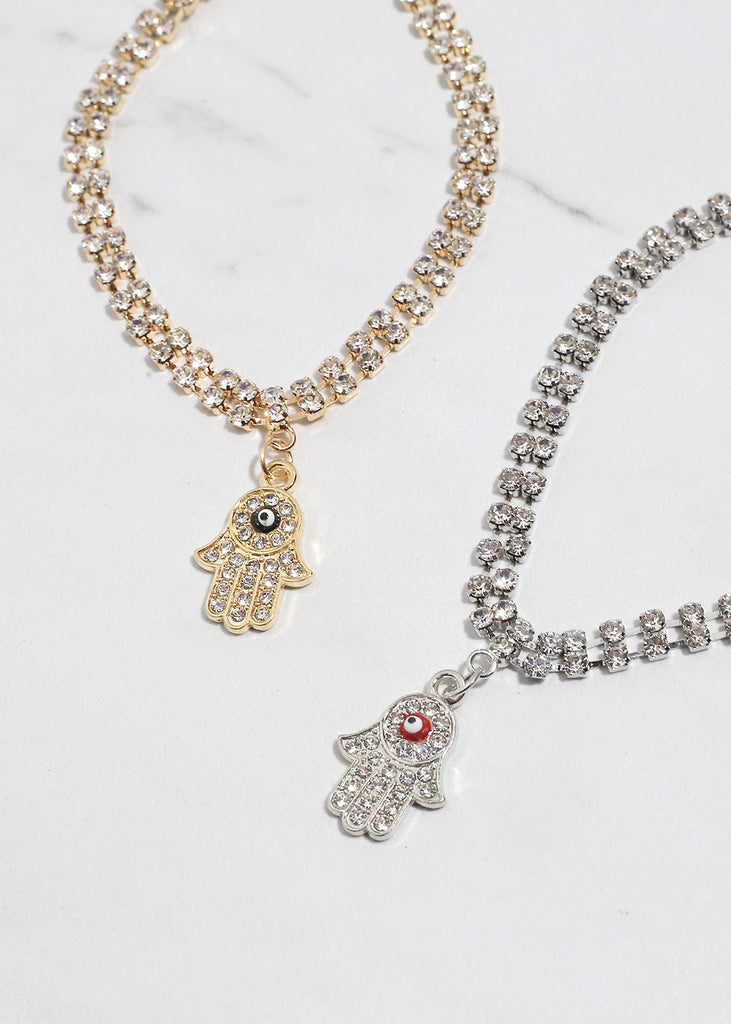 Red Hamsa Hand Bracelet with Multi Rhinestones