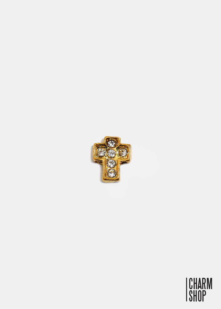 This Rhinestone-studded cross, offered in gold, is the perfect way to represent your faith and hold it close to your heart in your Locket!