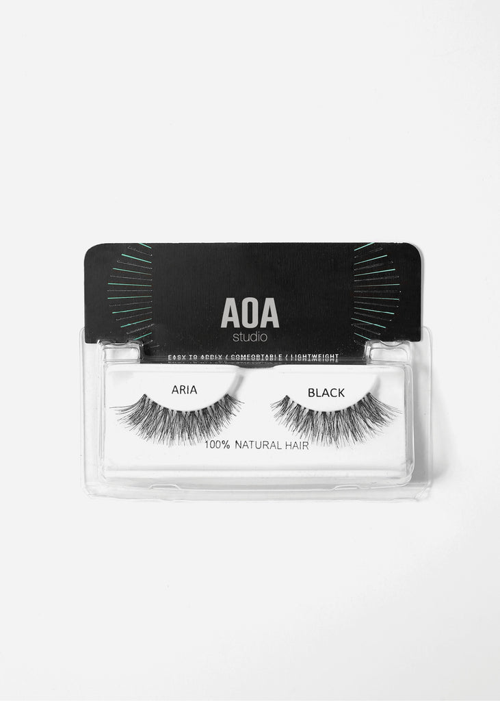 Lightweight + SUPER COMFY, AOA Studio Eyelashes are 100% Natural Hair + add fluttery glamor, length, volume, + definition to all eye shapes. Features a non-scratchy, flexible, invisible lash band for a super realistic look. Handcrafted with care.