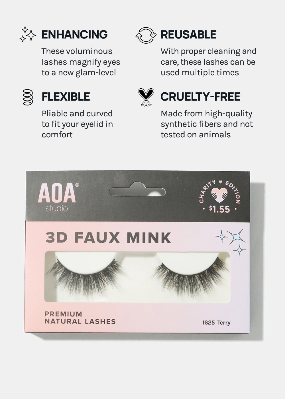 These lashes are vegan, cruelty-free, and made from synthetic fibers. The band is thicker, therefore can be reused multiple times with proper care and cleaning!