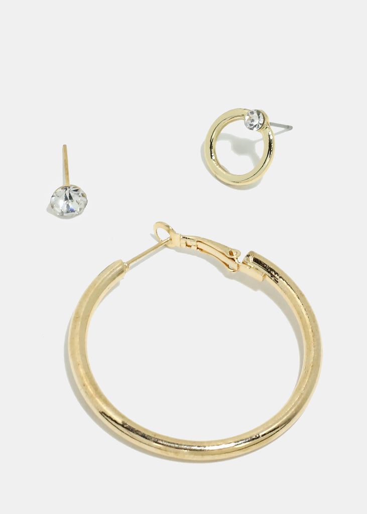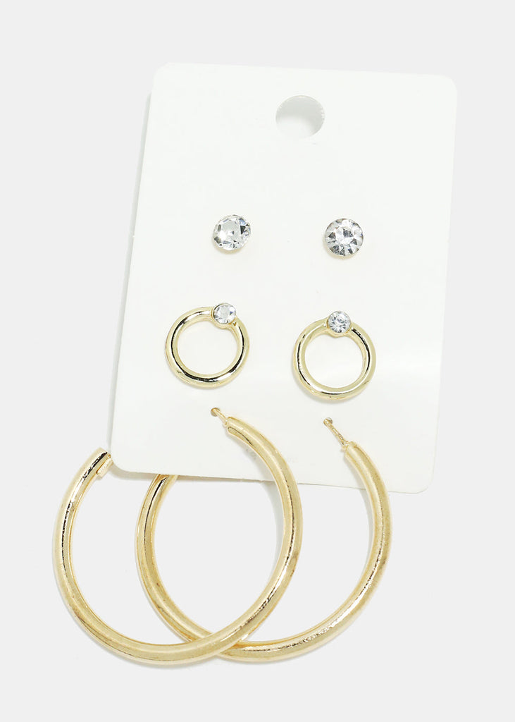 Get your hands on these essential basic earrings featuring 2 studs and hoop earrings that are a must-have in your collection!