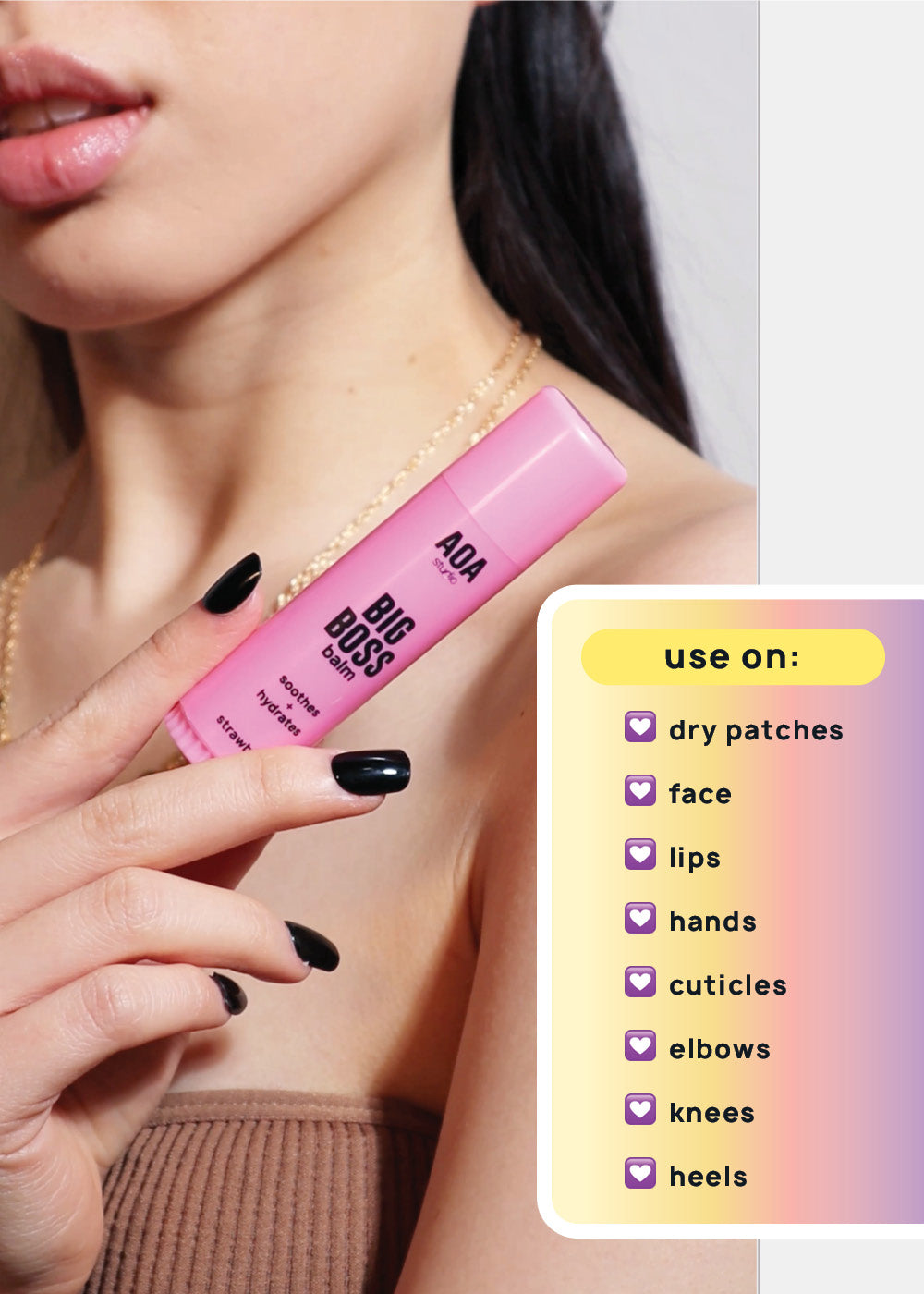 - A hydrating balm to use on lips, cuticles, elbows, and dry areas on the face