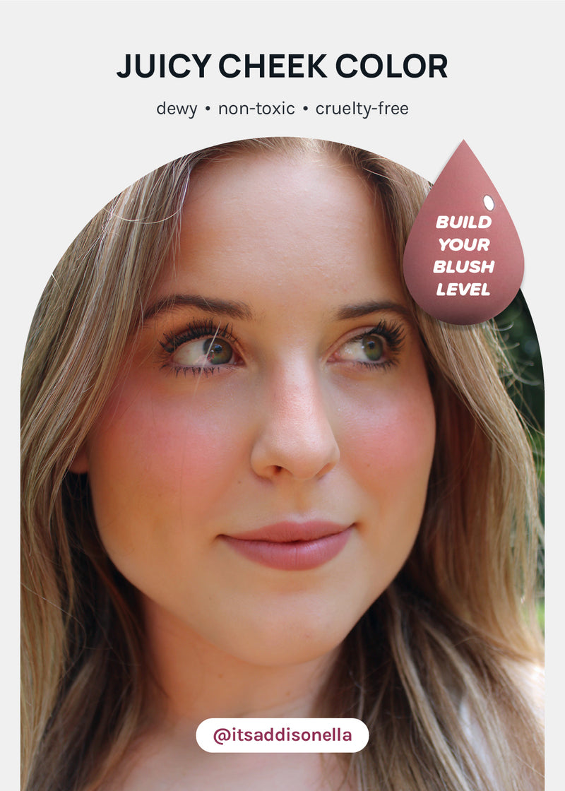 Dewy, buildable blushes that layer seamlessly to enhance your bone structure from every angle! Lightweight + great for sensitive skin. A cheek stain to give you a natural flush.