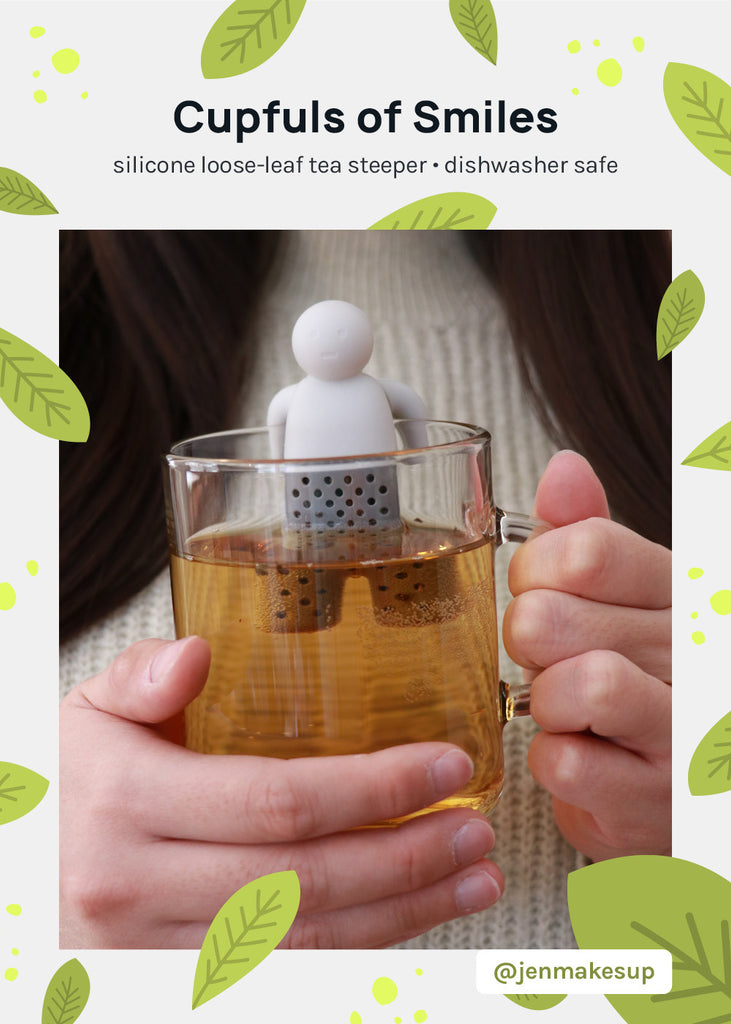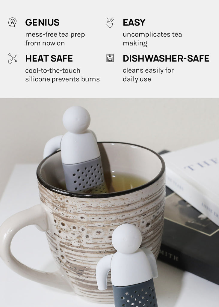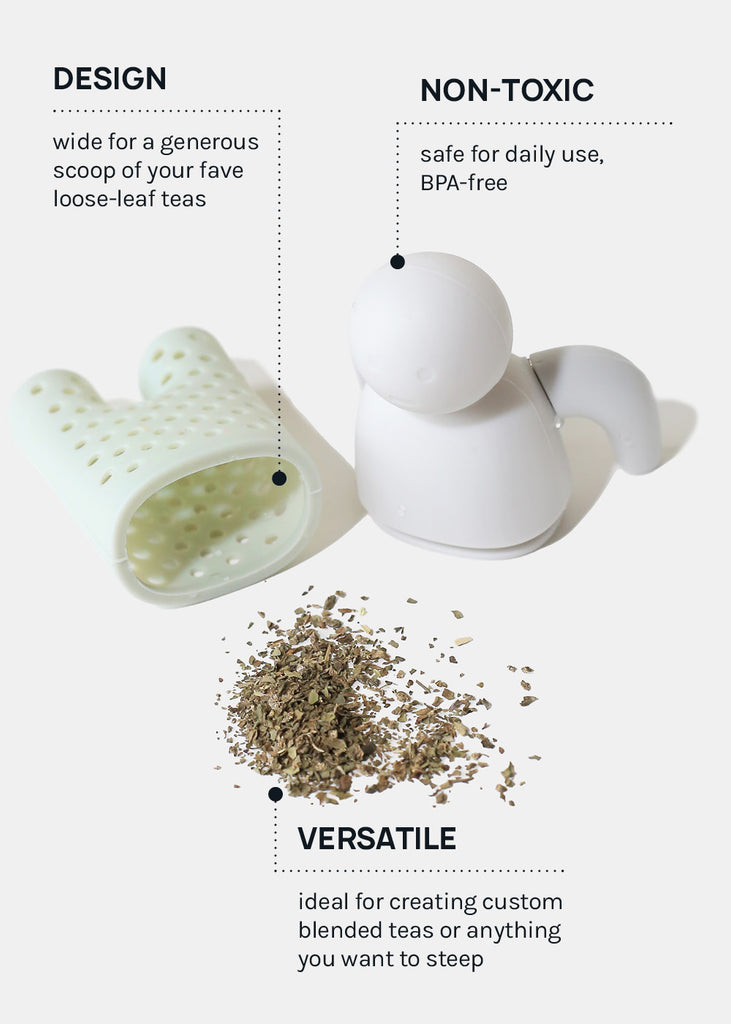 Simply fill the trouser portion of the infuser with your desired loose tea then perch to steep + enjoy.