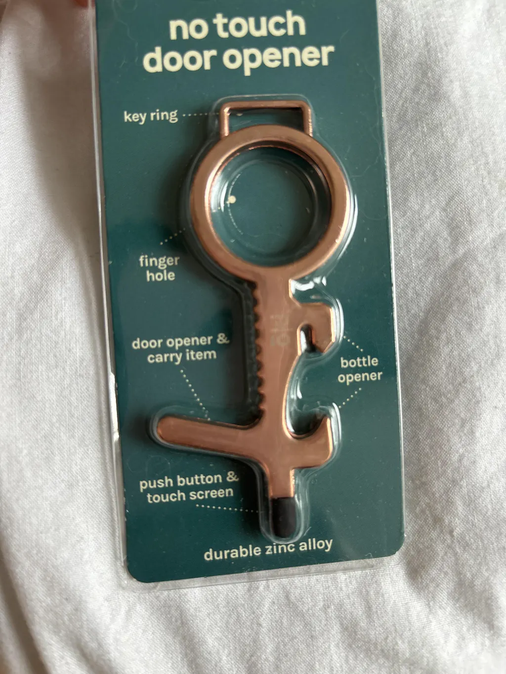 This keychain is the perfect tool to keep with you everywhere you go! Made from a durable zinc alloy that helps to prevent the transfer of germs and viruses.