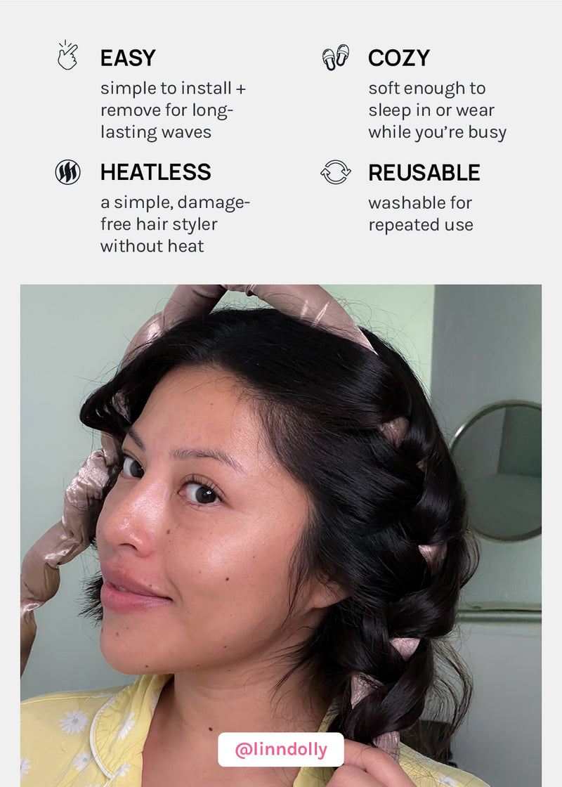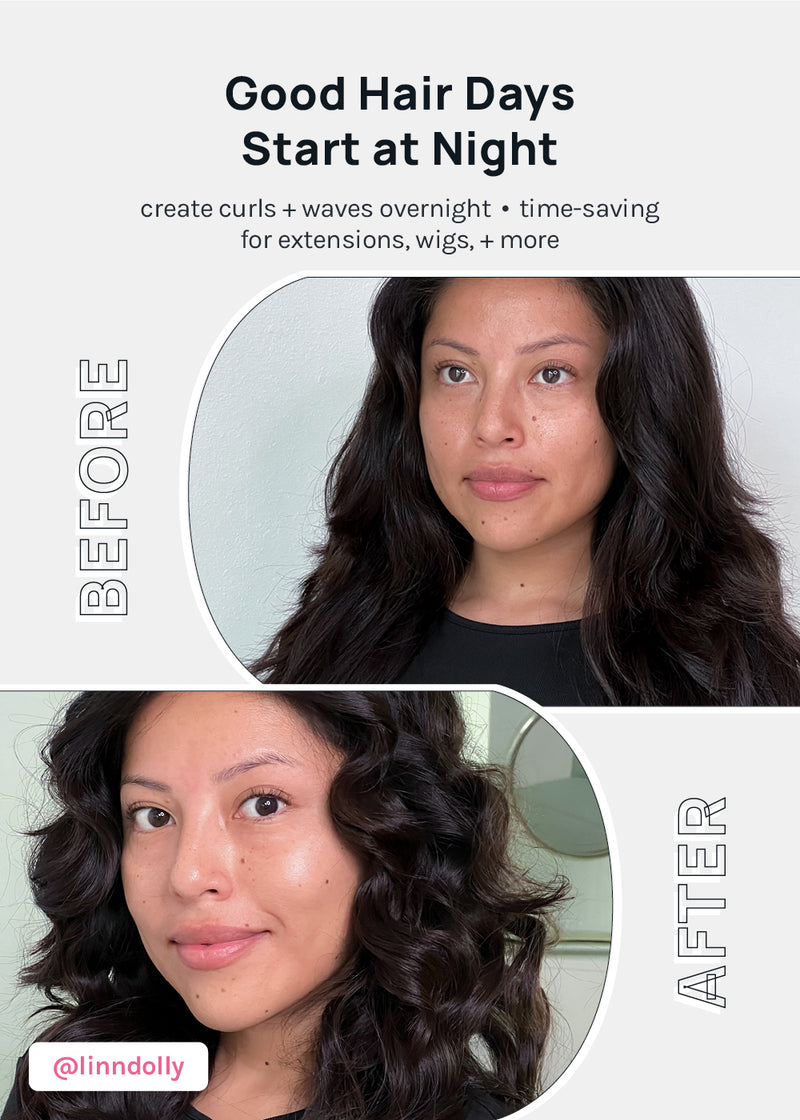 Frizz-free, perfect waves, + curls for all hair types! No matter your style, add heat + damage-free volume to your hair while you sleep, do chores, run errands + more!