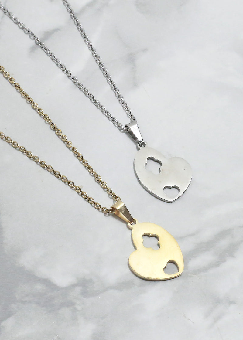A stylish heart and clover necklace in gold and silver color. Style this pretty necklace with your favorite outfit.