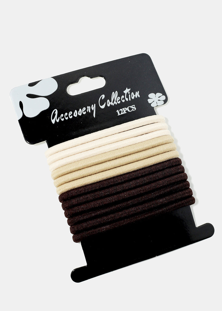 12-piece neutral color hair ties perfect for everyday wear. Tie up or braid up your hair with these stretchy hair ties. An essential addition to your collection.