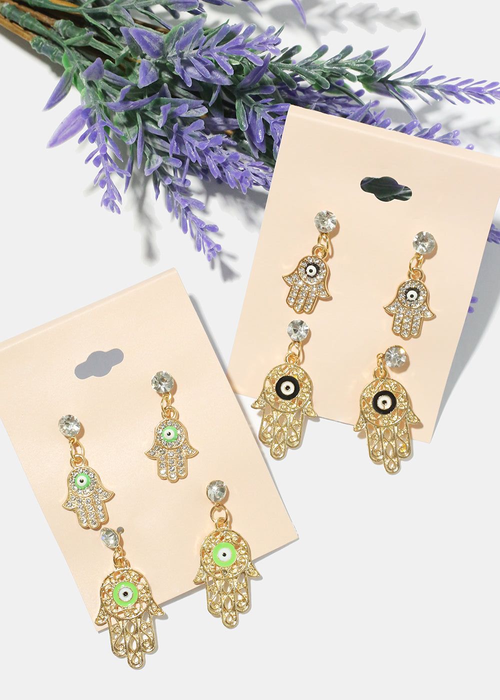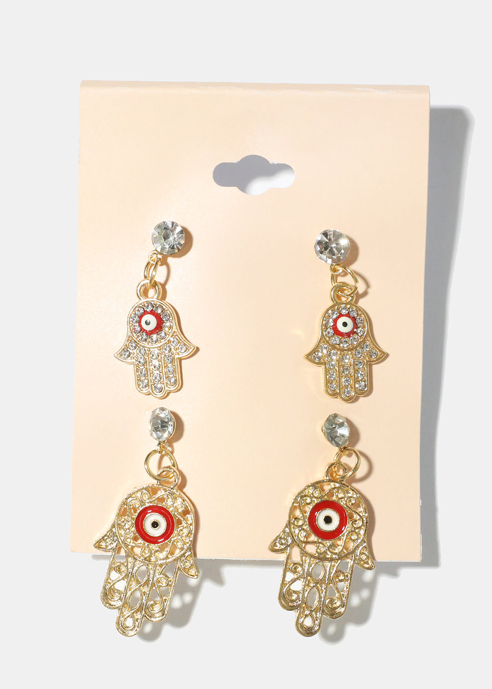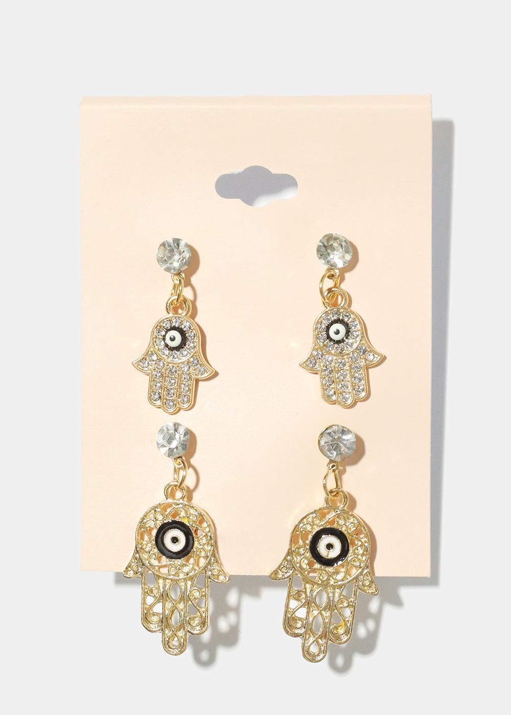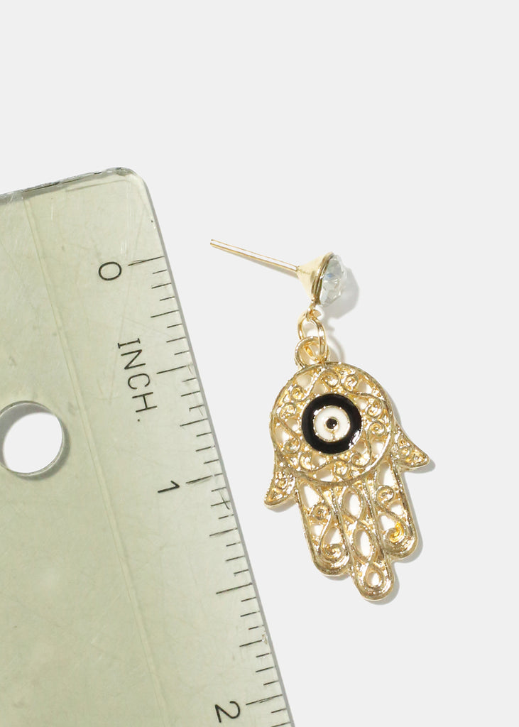 - Beautiful shimmer rhinestone Hamsa Hand dangle earrings