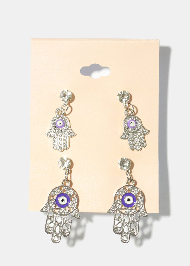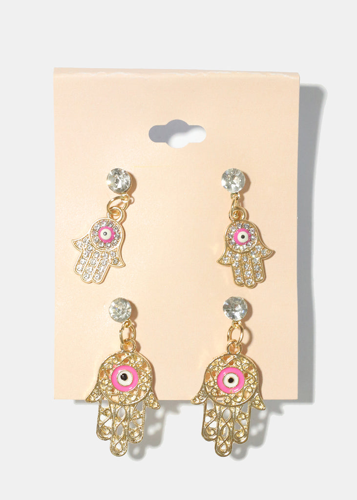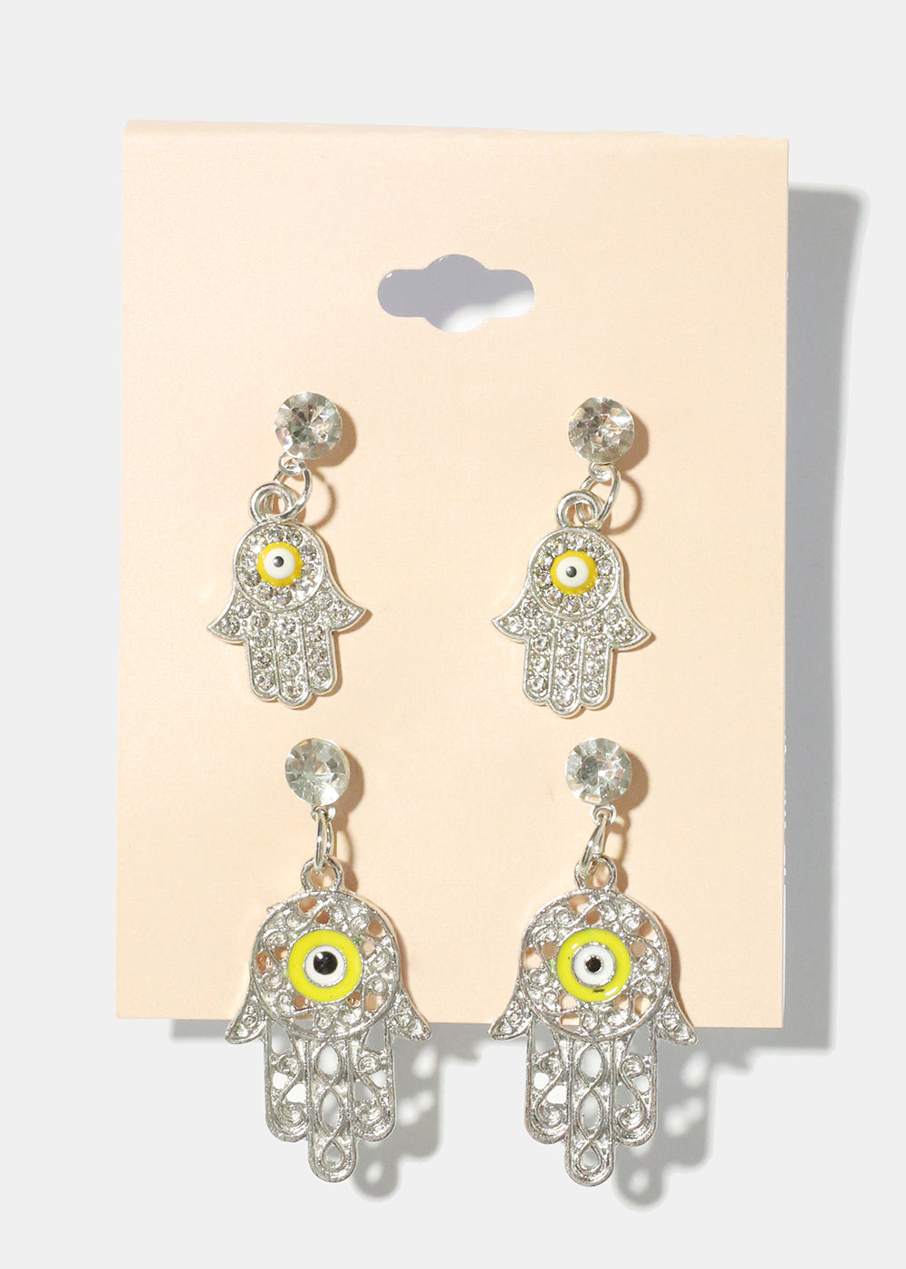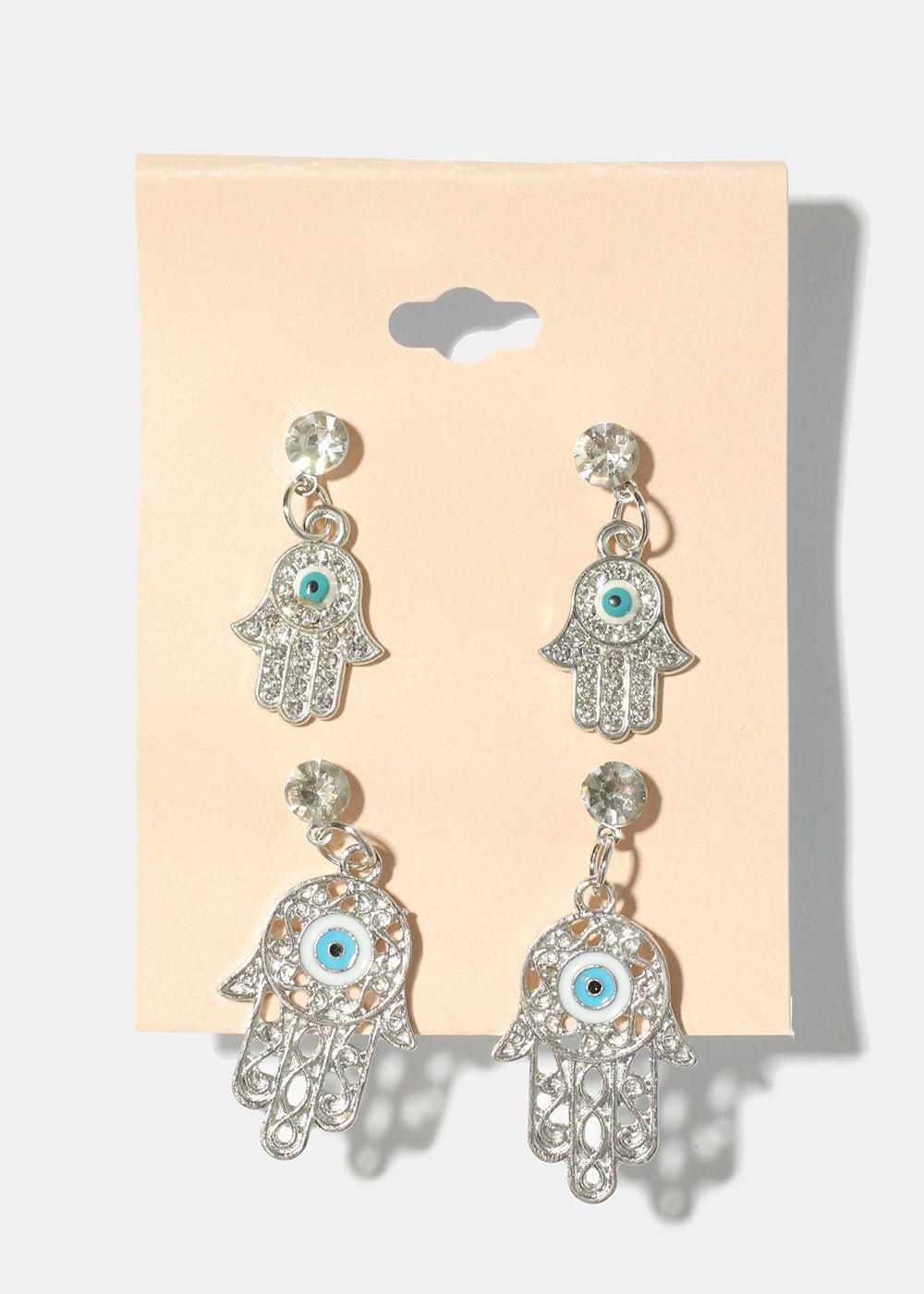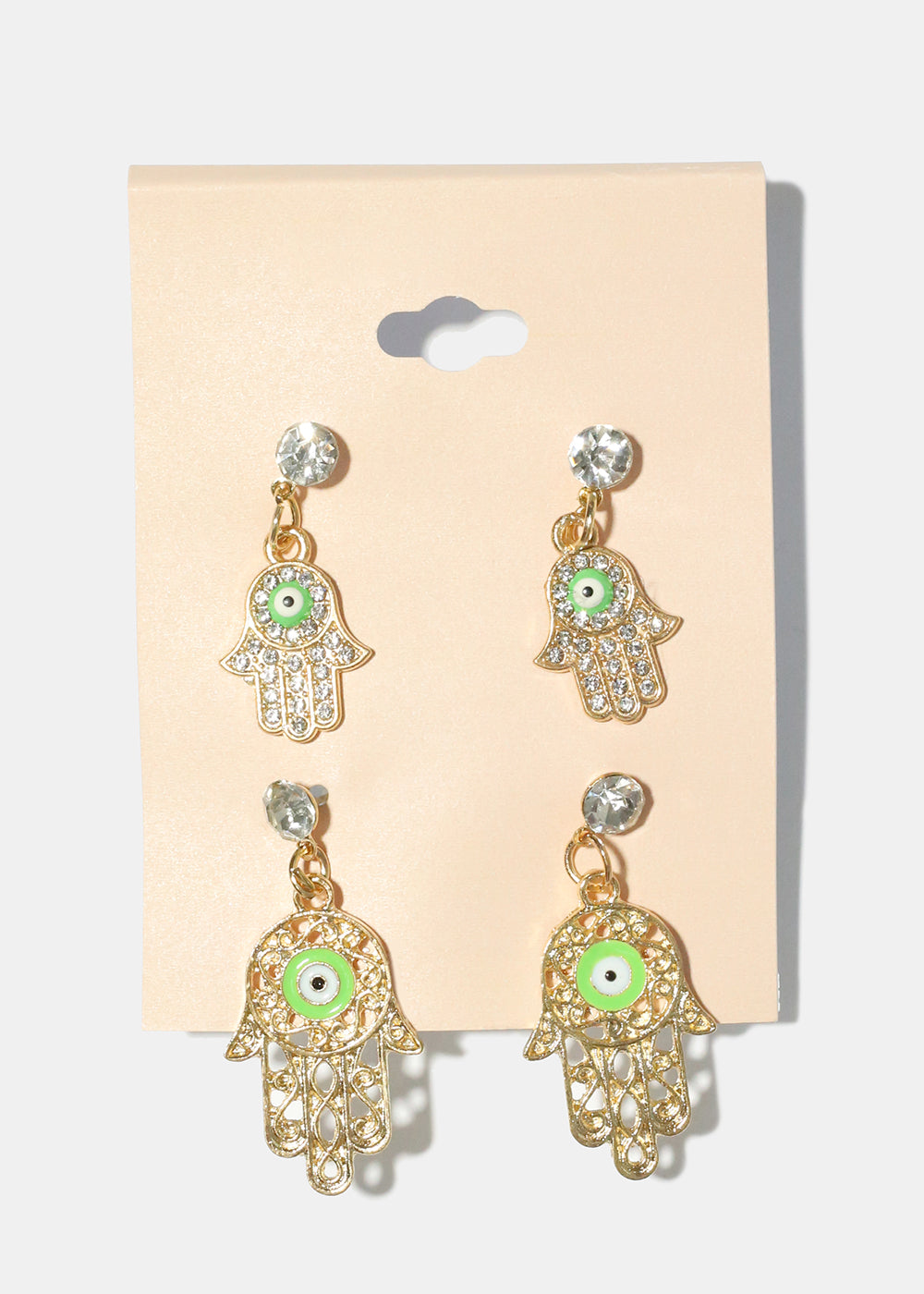 - Beautiful shimmer rhinestone Hamsa Hand dangle earrings