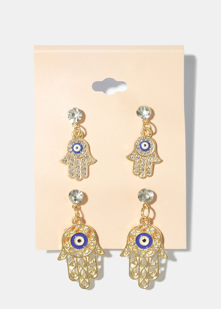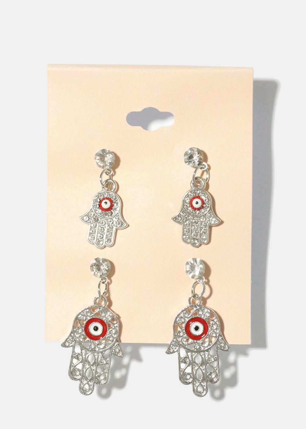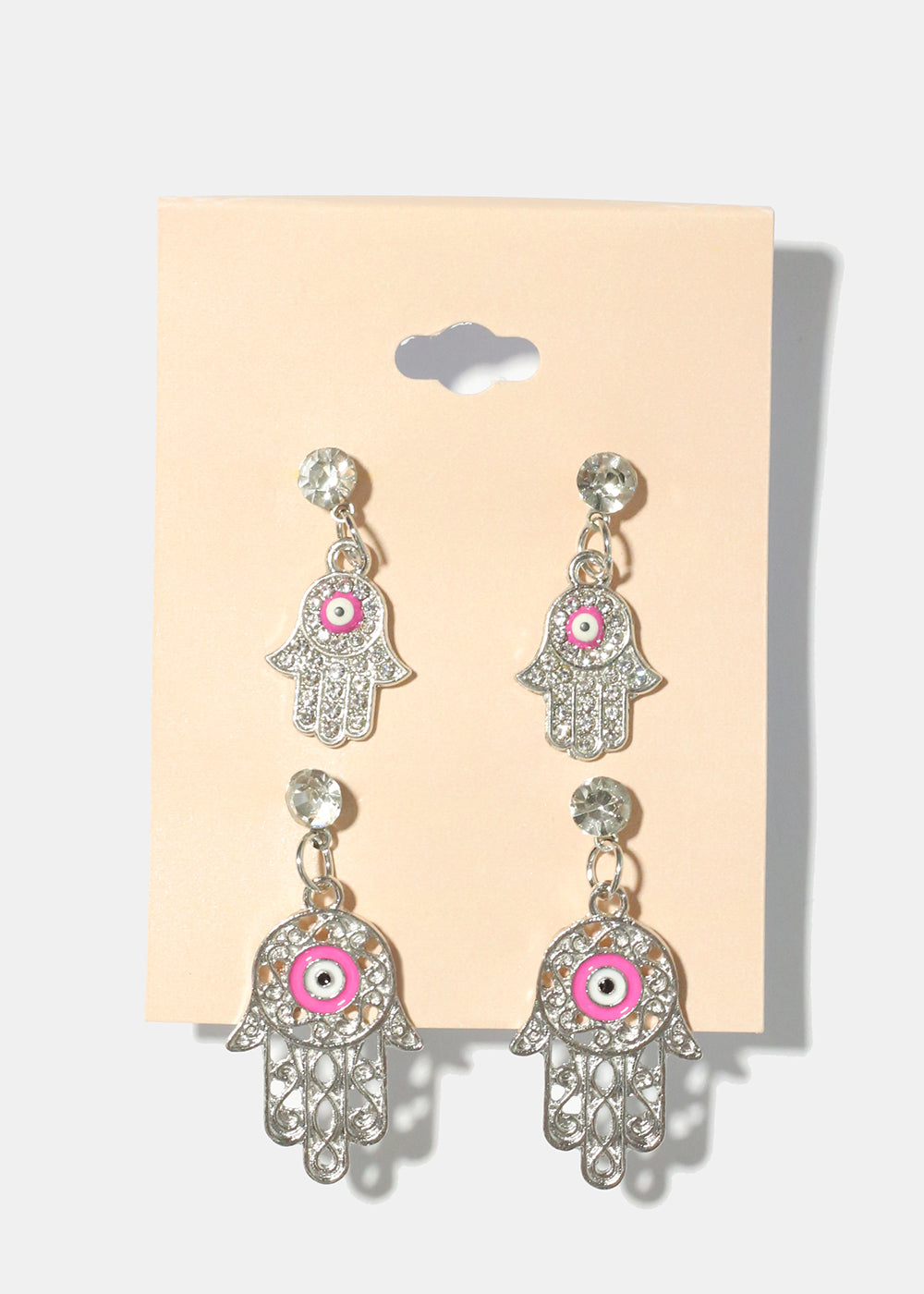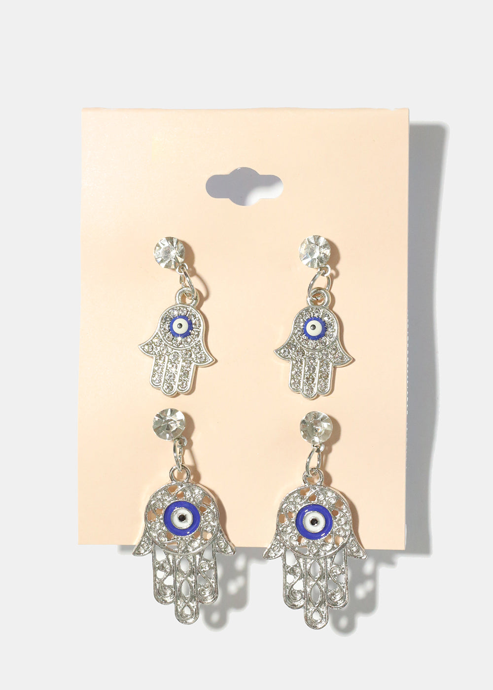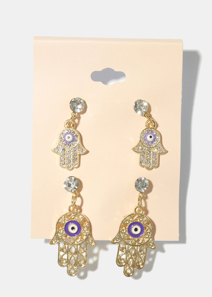 - Beautiful shimmer rhinestone Hamsa Hand dangle earrings