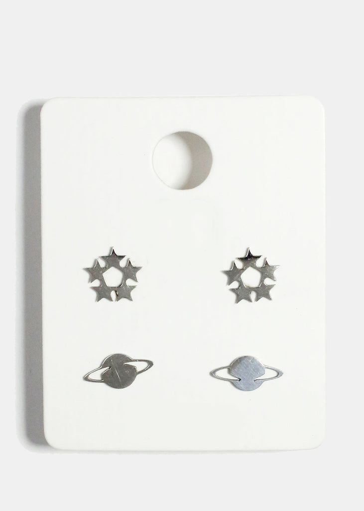 2-pair set of earrings featuring cute star and plane studs that you can style with all of your looks. Add these beautiful earrings for the perfect stylish look.