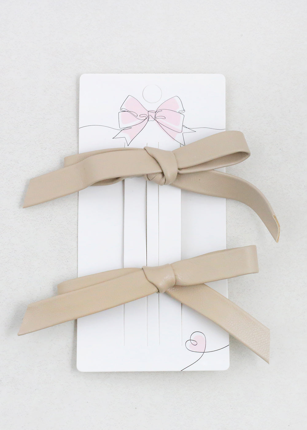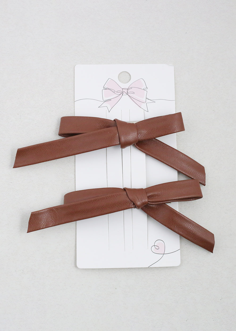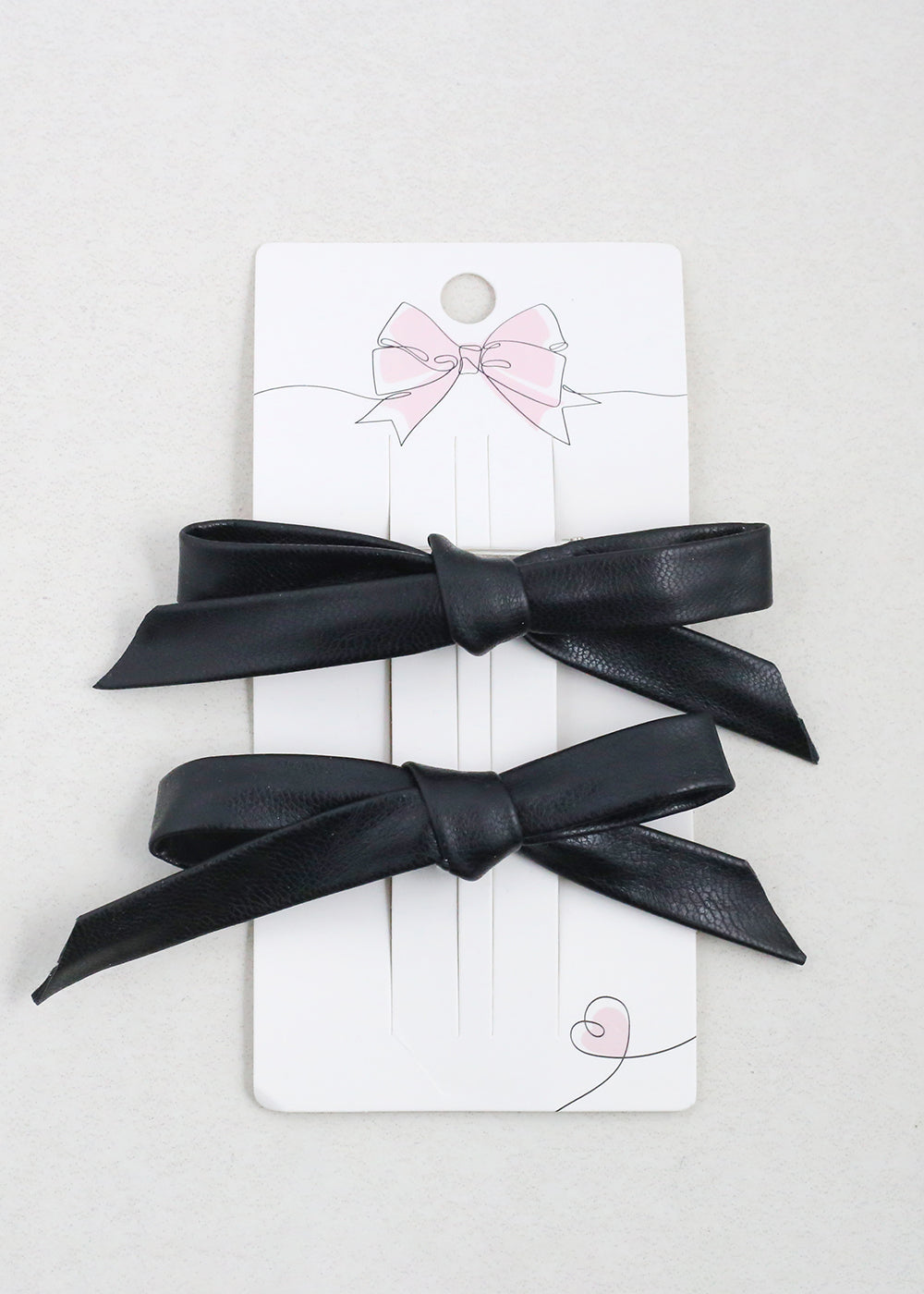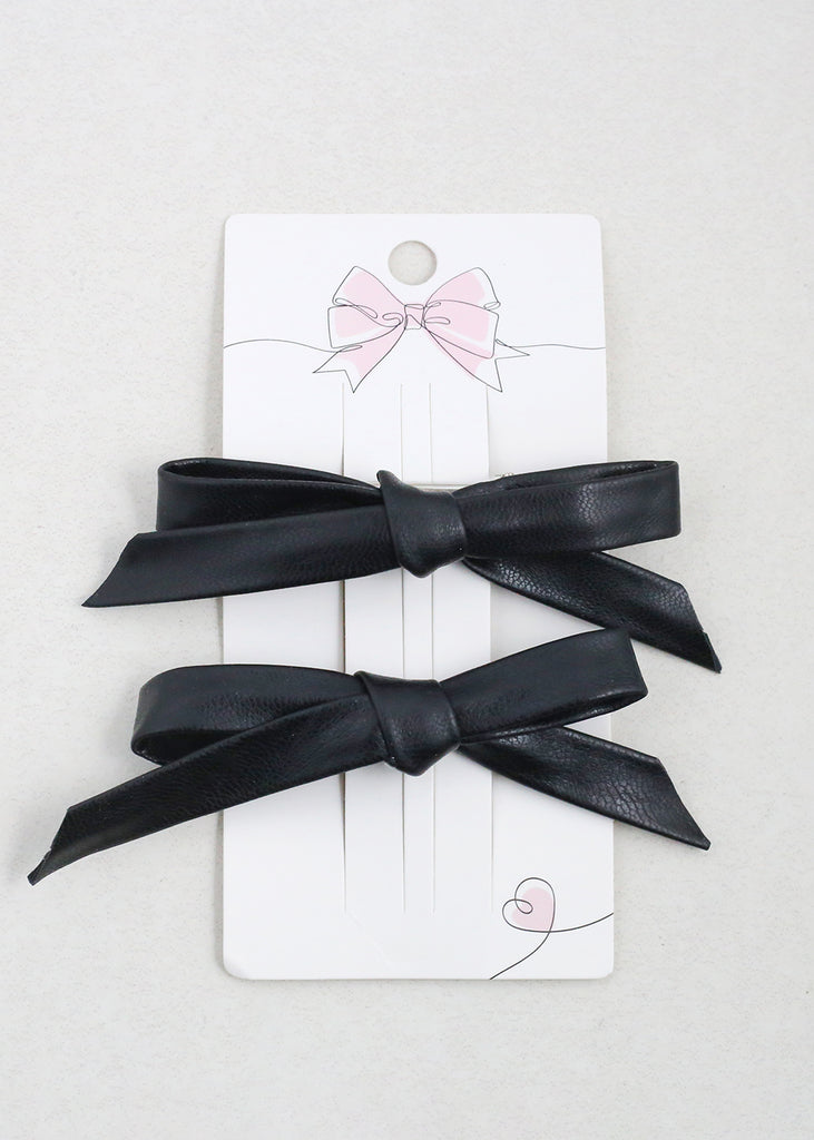 Add a touch of timeless elegance to your look with our 2-Piece Faux Leather Bow Hair Clip Set! Designed to complement any outfit, these beautifully crafted hair accessories offer a modern twist on classic style.