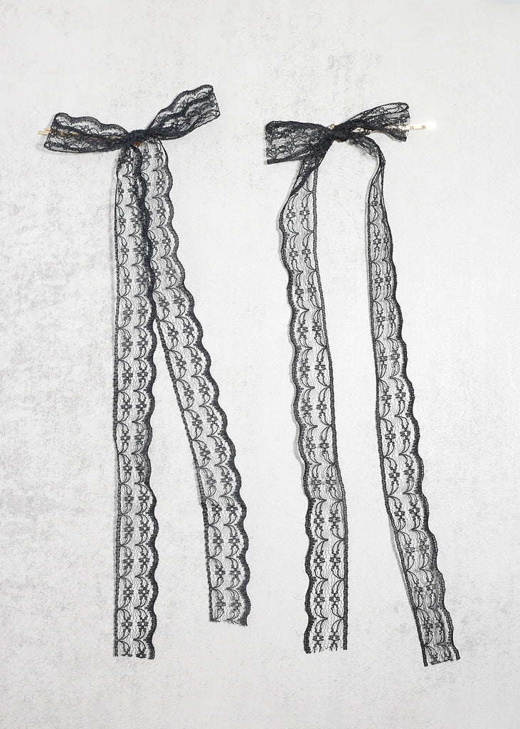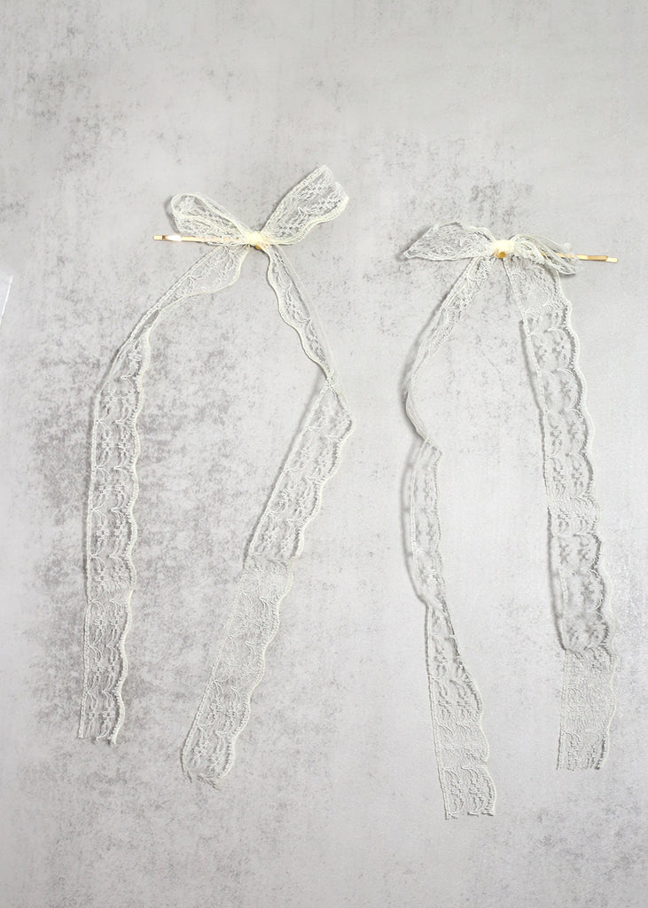Enhance your hairstyle with these chic 2-piece long lace hair clips, designed to add a touch of elegance and femininity to any outfit. Featuring delicate scalloped lace ribbons tied into soft, flowing bows, these hair clips bring a romantic, vintage-inspired charm to your look.