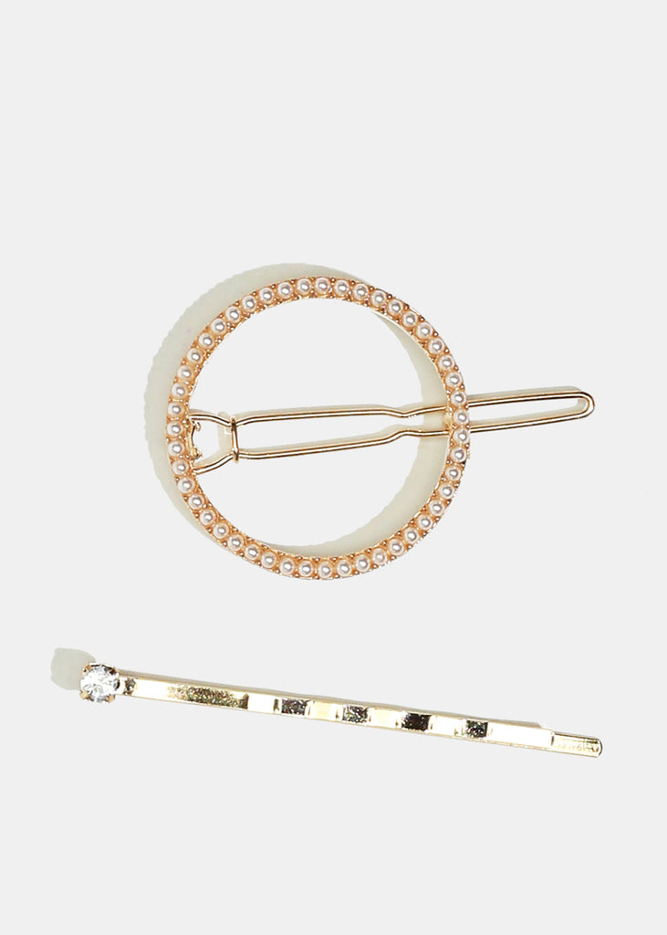 2-Piece Circle & Rhinestone Hairpins