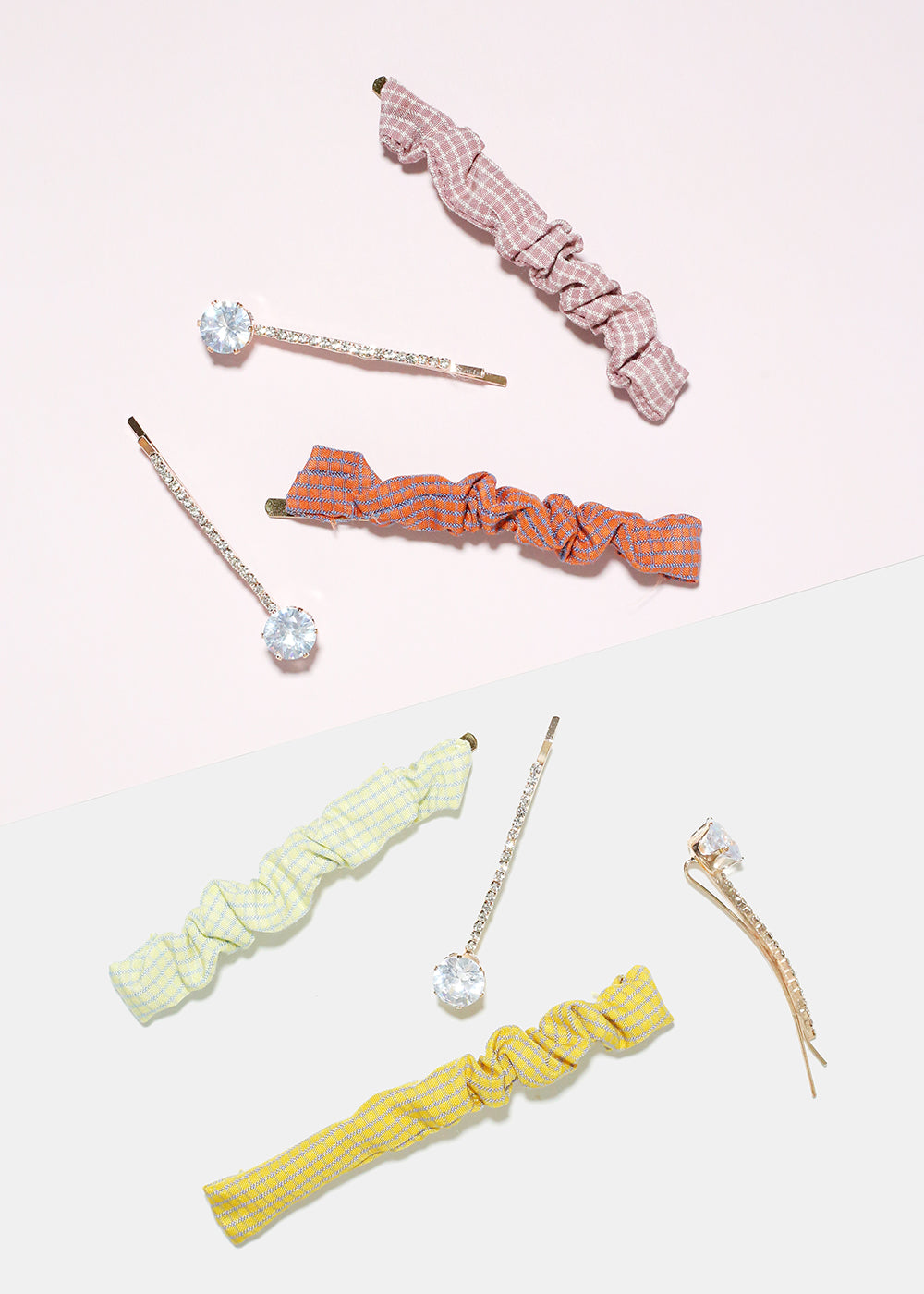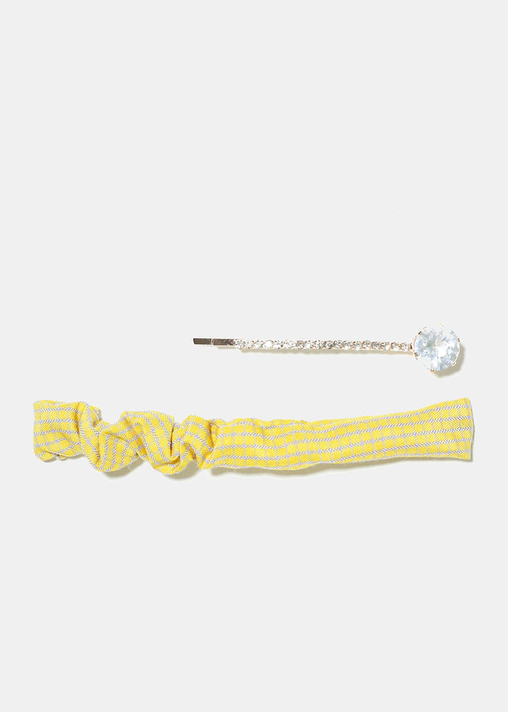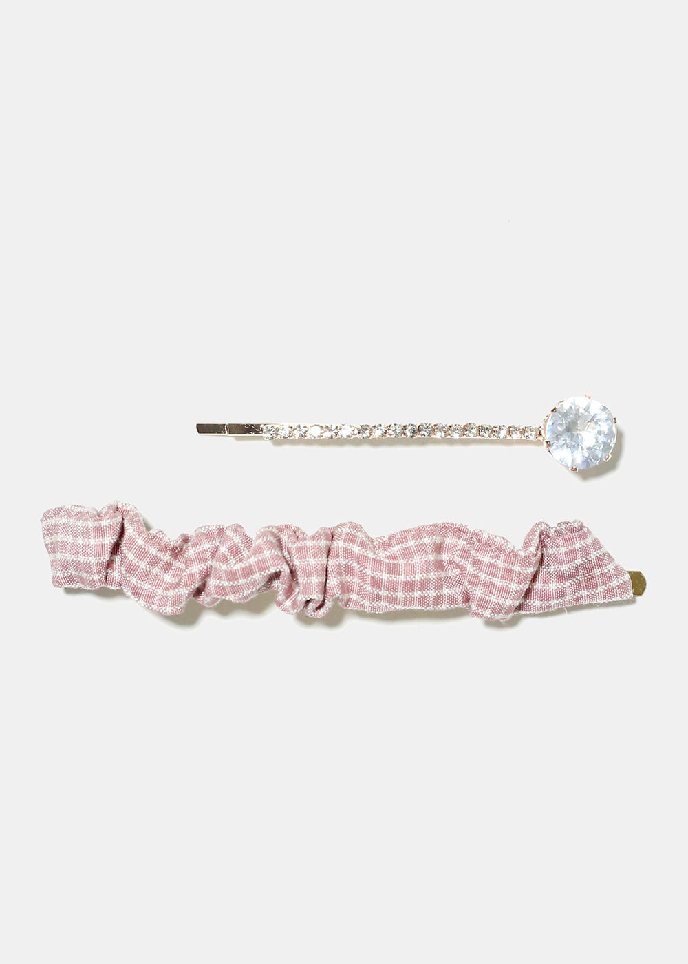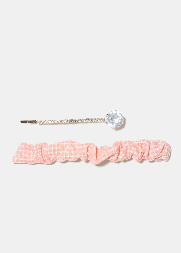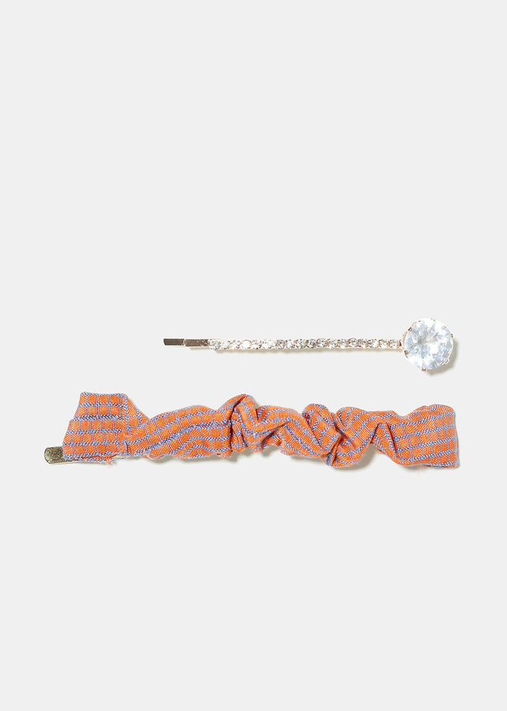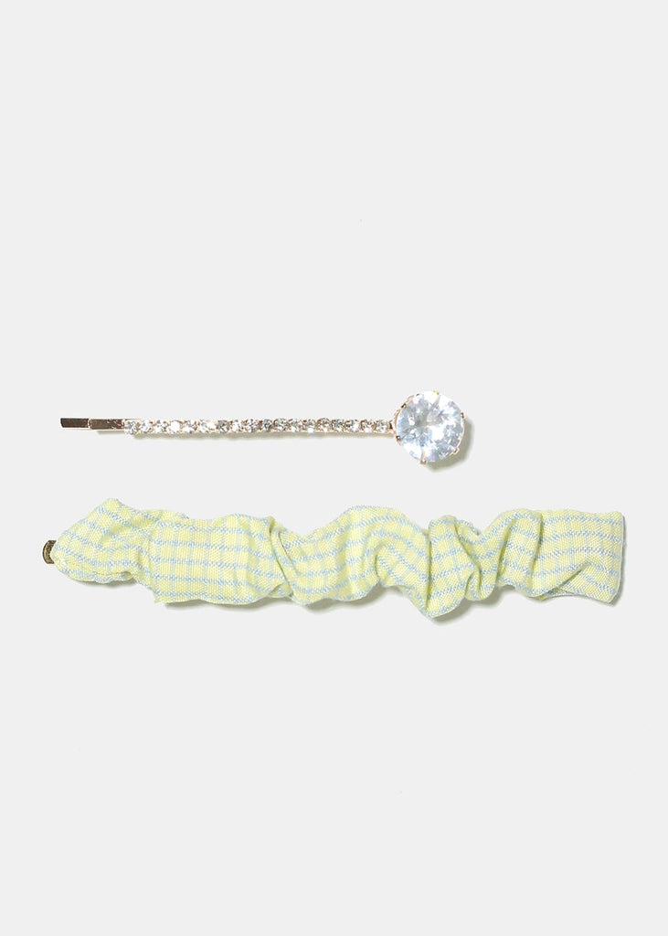 2 Piece Plaid & Gemstone Hair Pins