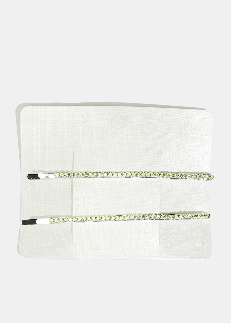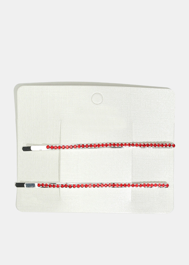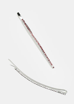 2-piece hairpin set featuring colorful rhinestone-studded hairpins in multiple colors. Add this stylish set to your braids, bun, and ponytails for a pop of sparkle!