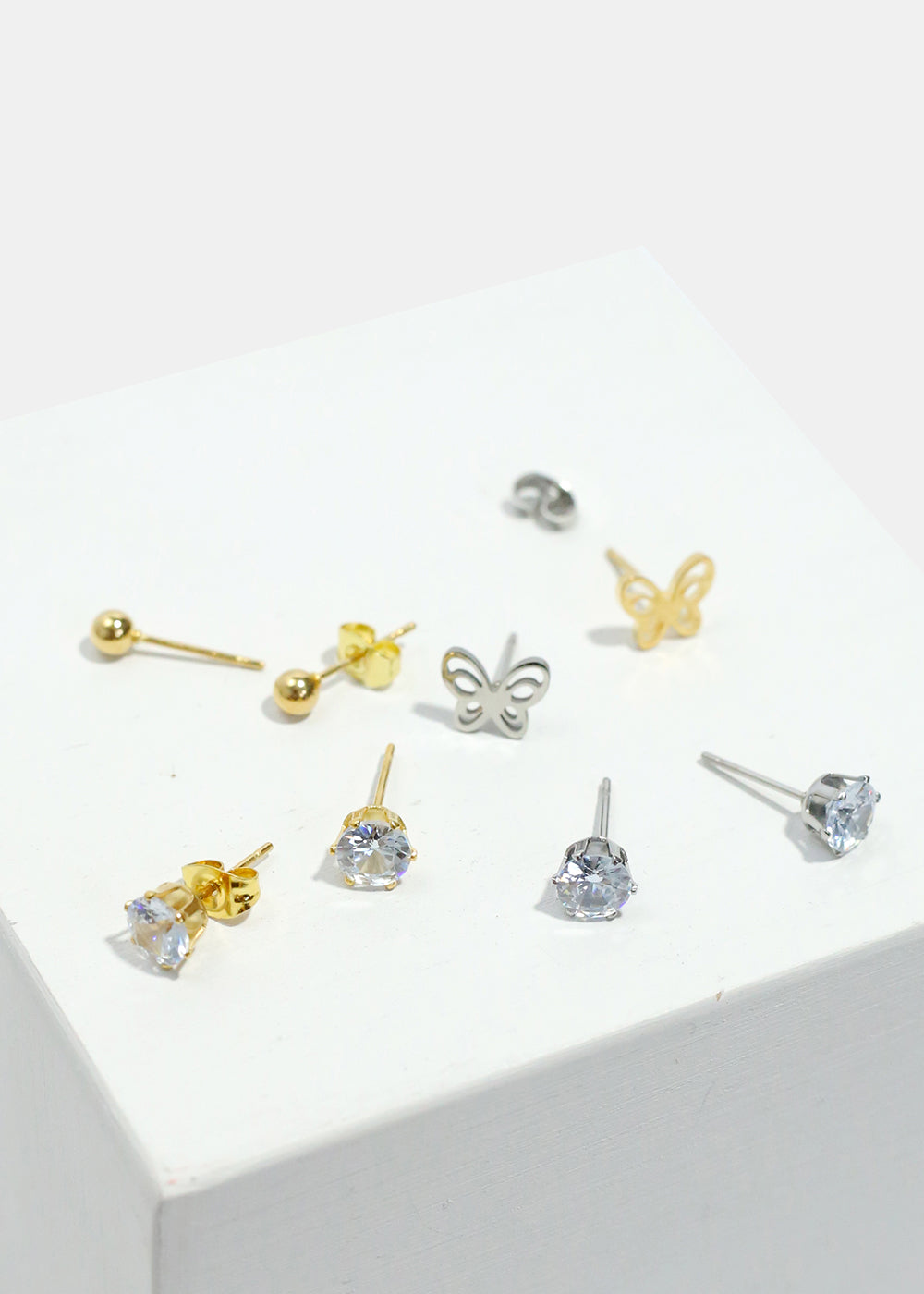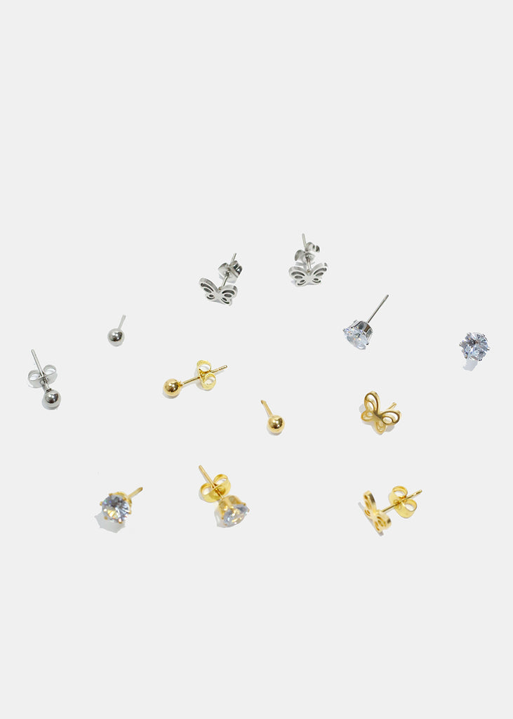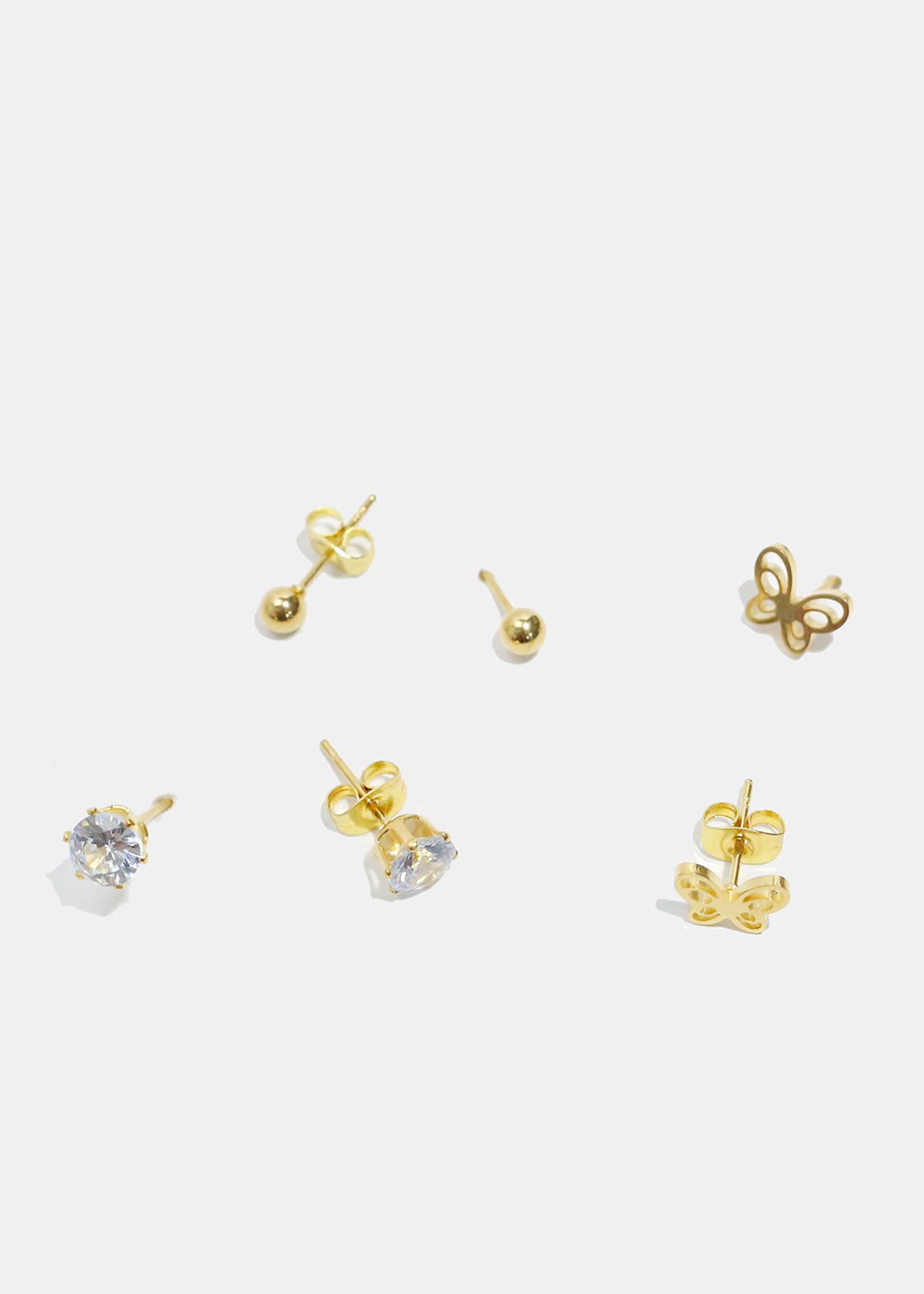 Collect this 3-pair earring set featuring butterfly and gemstone stud earrings. Pretty earrings that you can style with your everyday look.