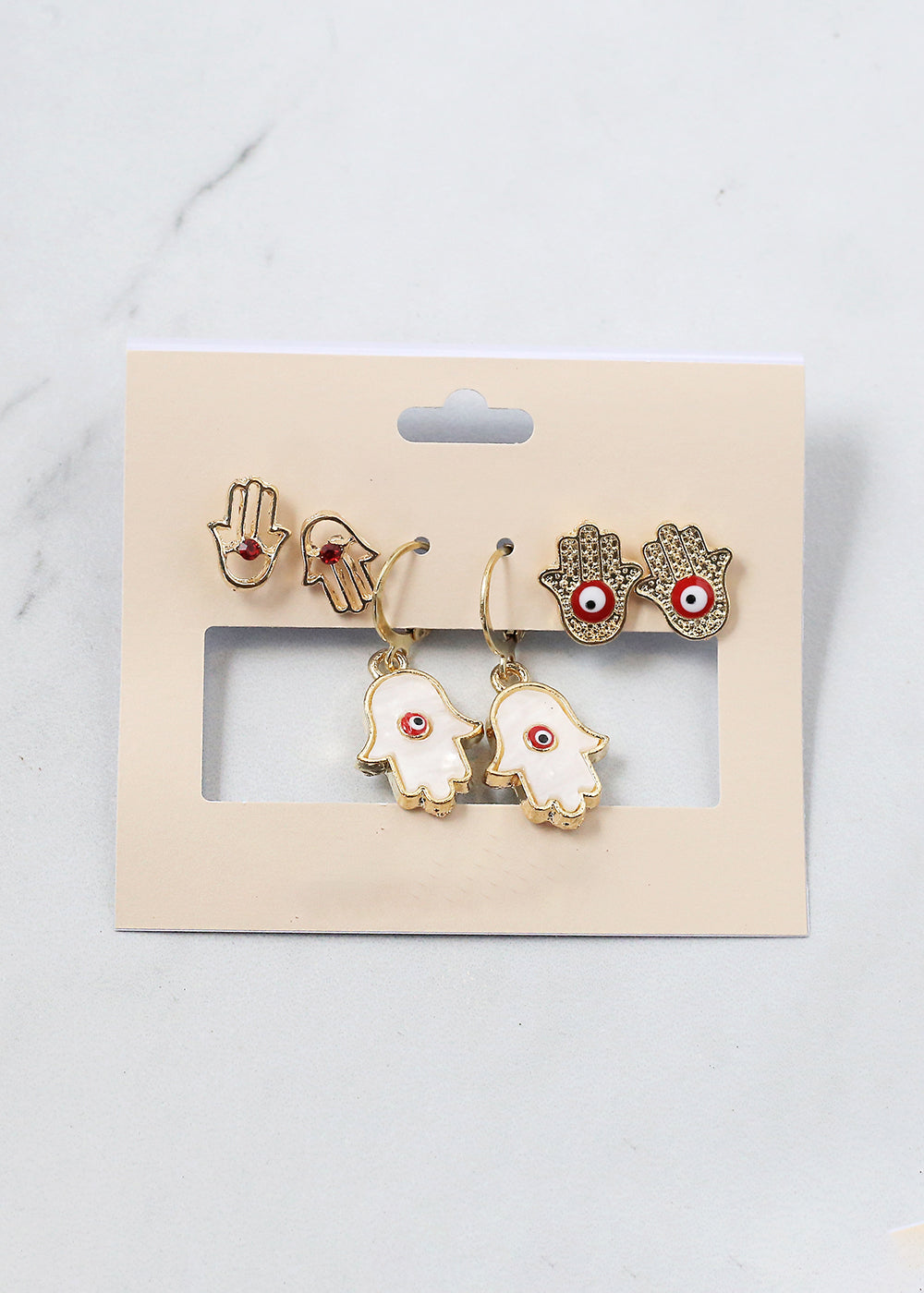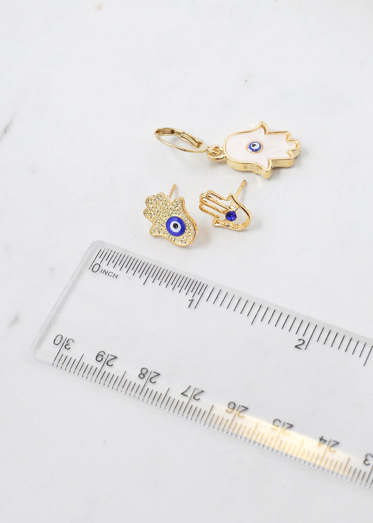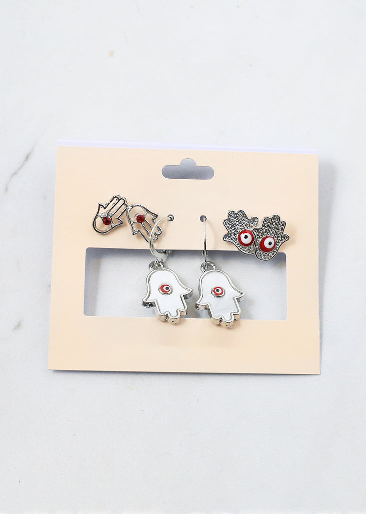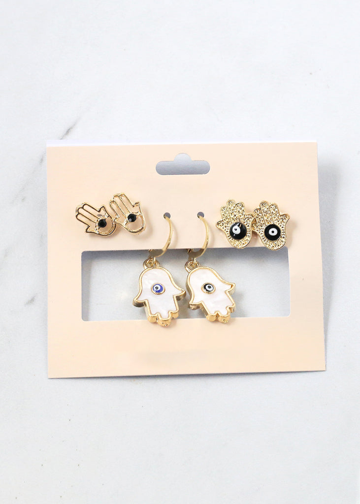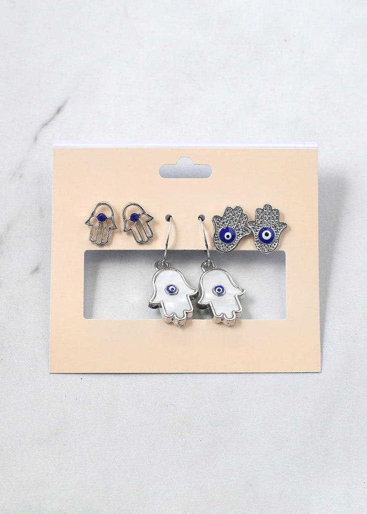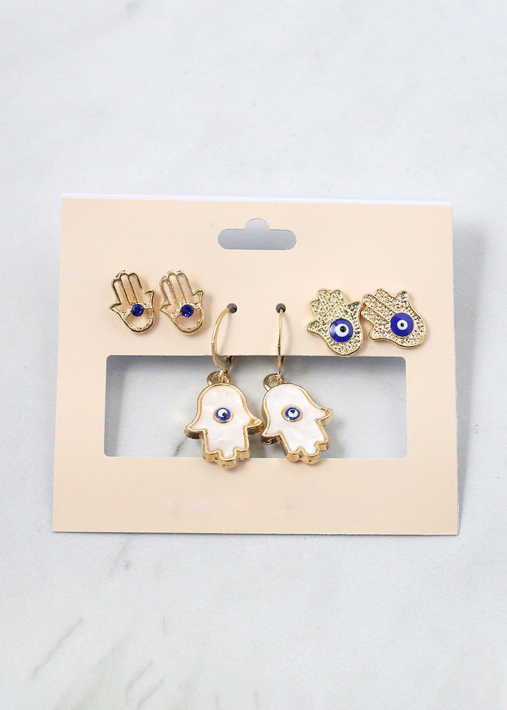 3 Pair Hamsa Hand + Evil Eye Earrings