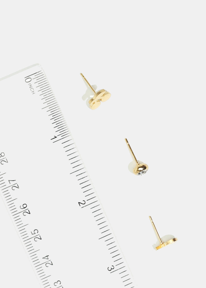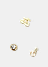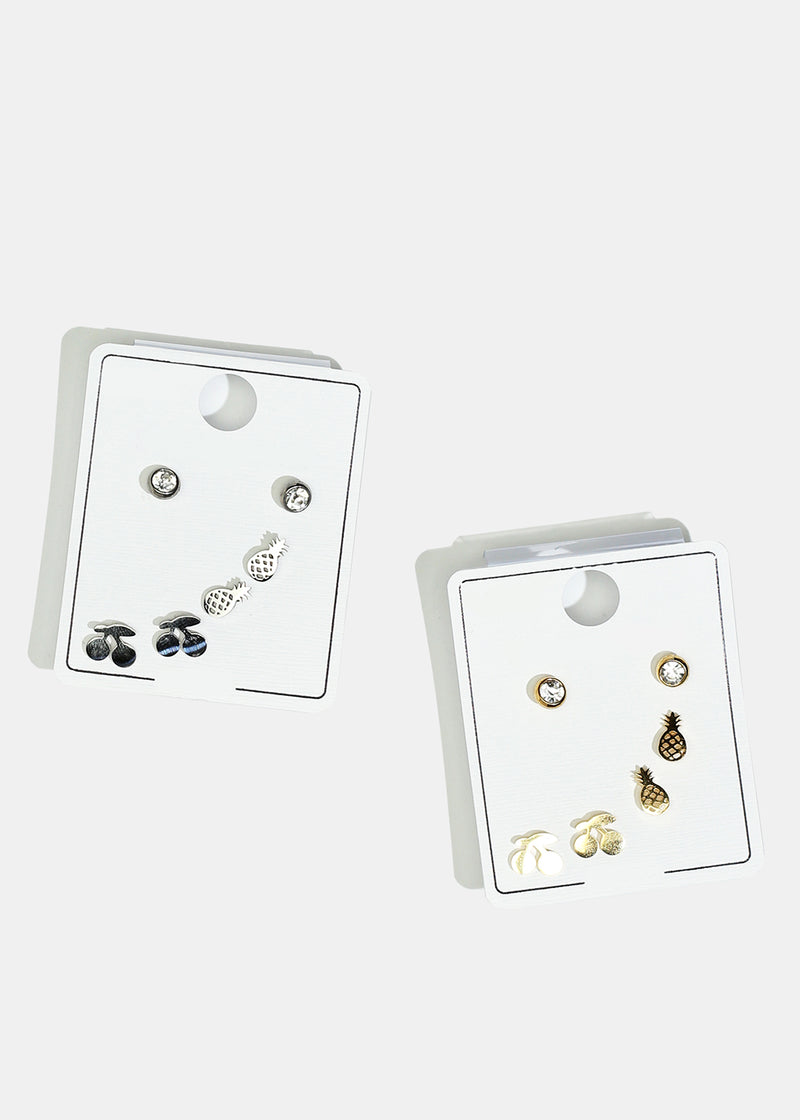 Collect this 3-pair earring set featuring rhinestone and fruit stud earrings. Pretty earrings that you can style with your everyday look.