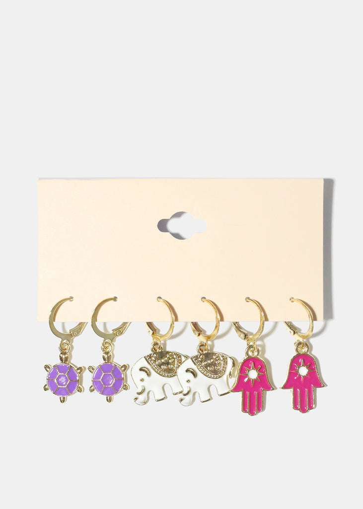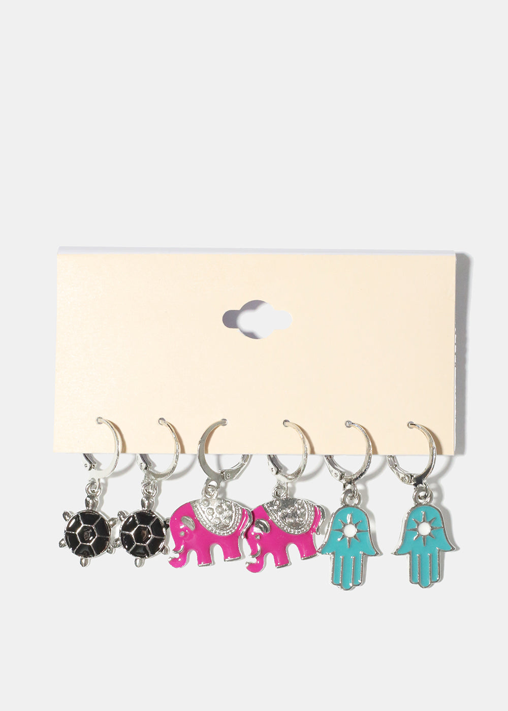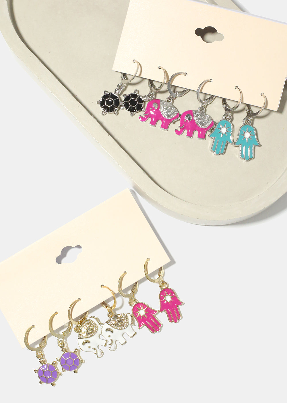 - Elephant, Hamsa Hands, and turtle dangle charms