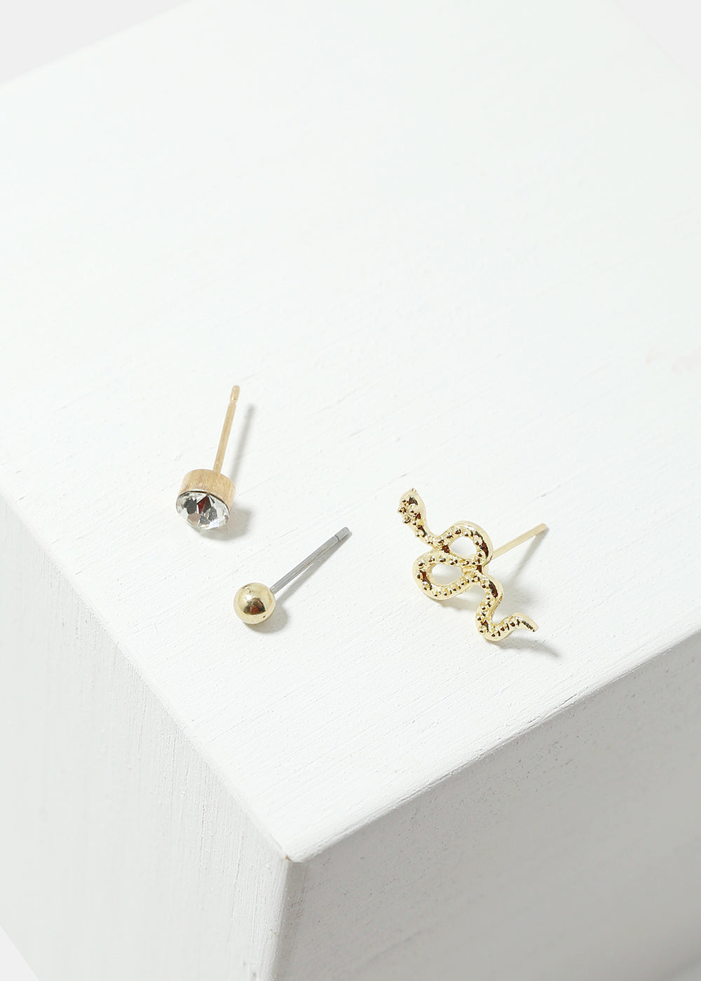 Achieve a bold and chic look with this 3-pair snake earring set!