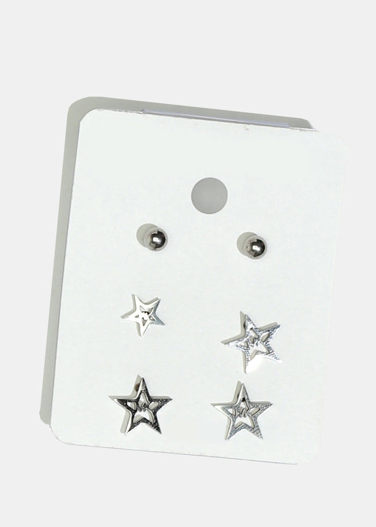 3-Pair Star Stud Earrings