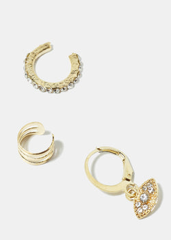 Stylish 3-piece gold cuff earrings set that you can style with any look!