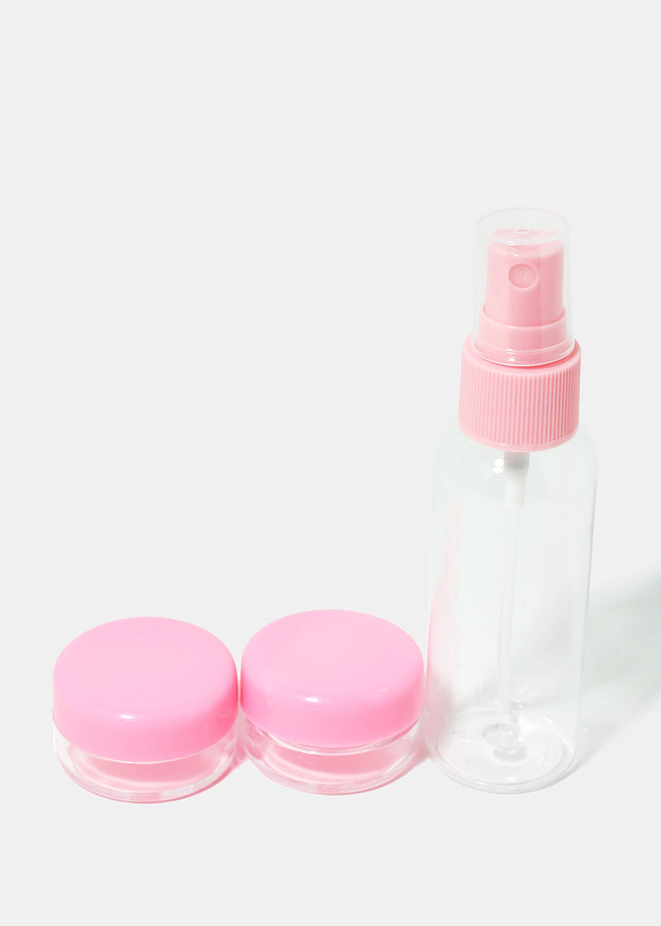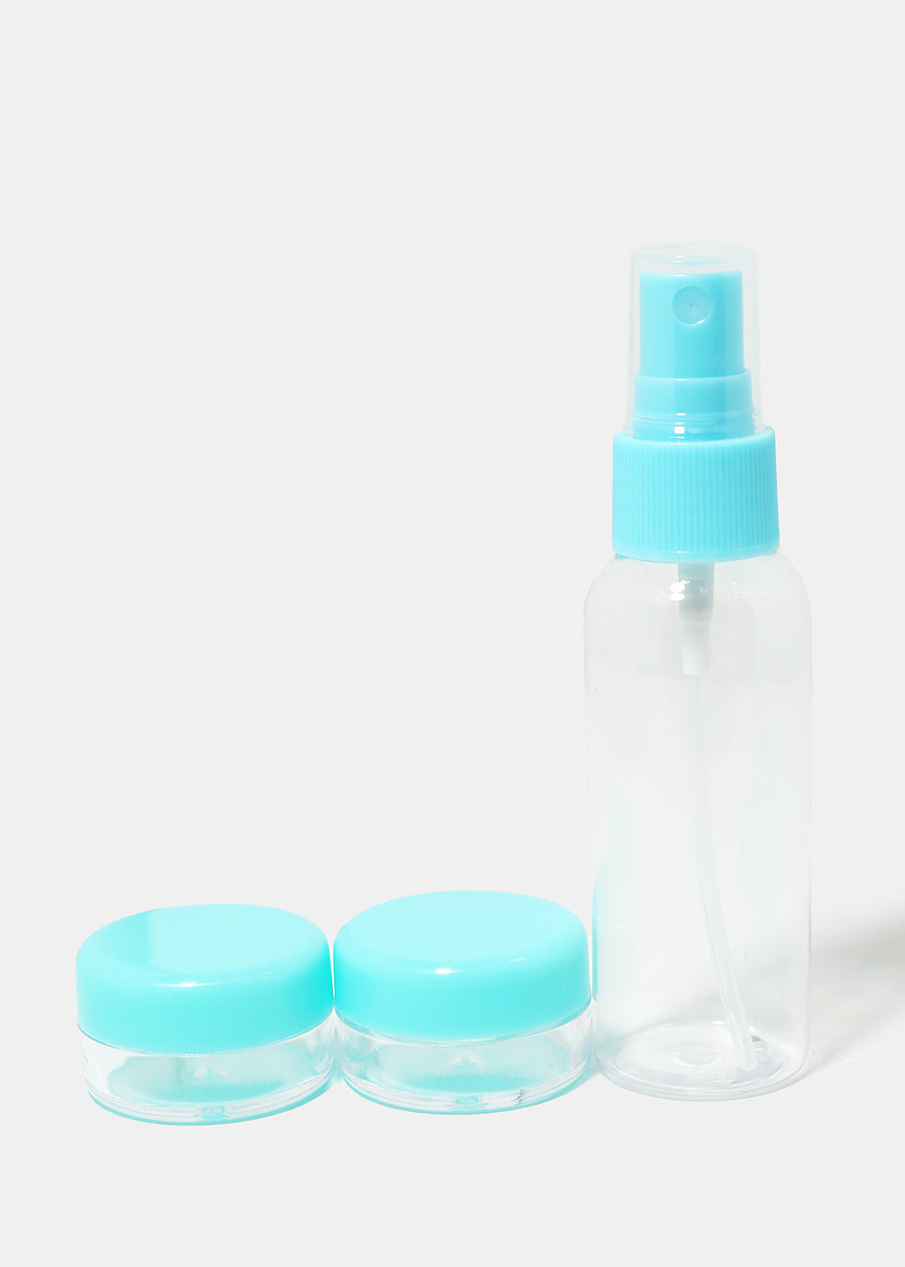 A 3-piece spray bottle and jar set perfect for traveling! Convenient size bottle and jars that you can keep in your purse, gym bag, and travel bag.