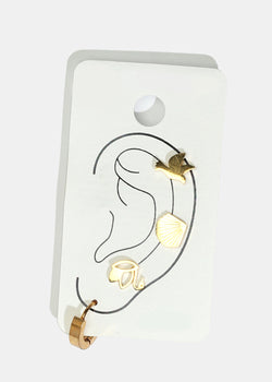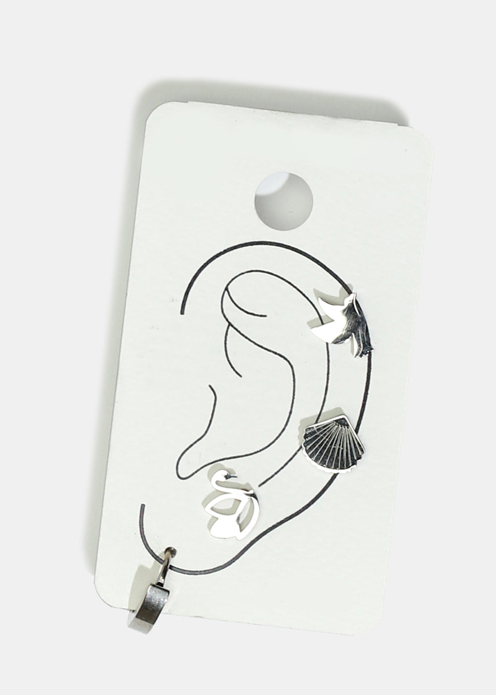 Get this 4-piece bird and shell stud earrings in gold and silver! A unique yet stylish addition to your look!