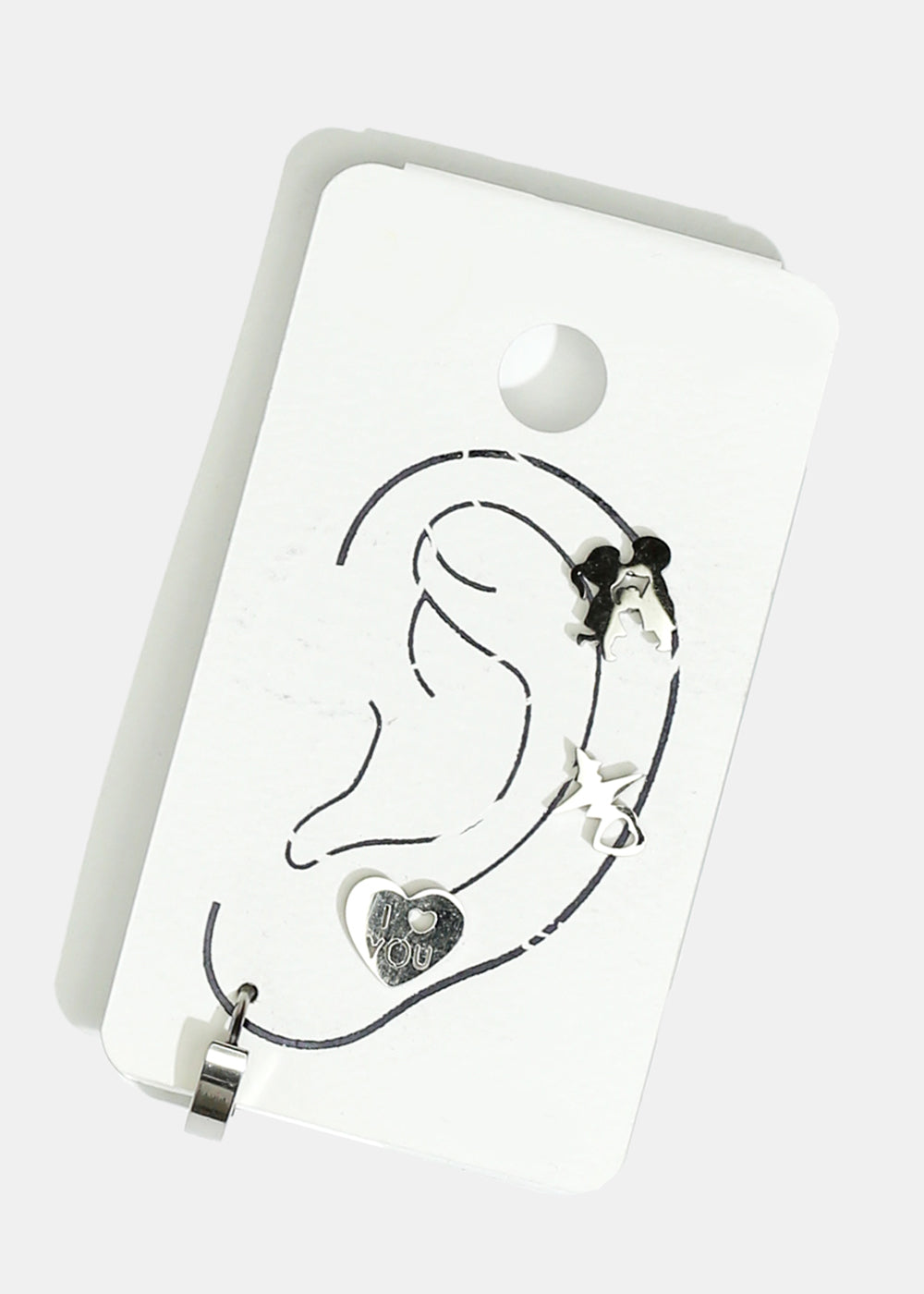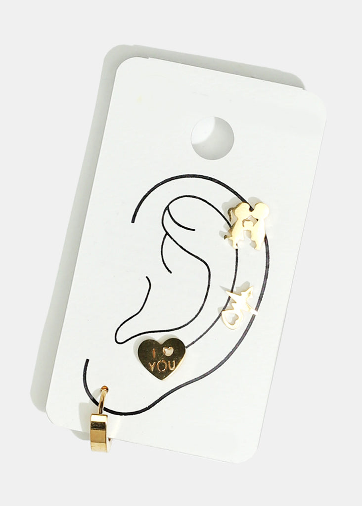 Get this 4-piece set of stud earrings featuring multiple styles such as couple, heart, and hoop earrings. Complete your everyday look with these chic earrings.