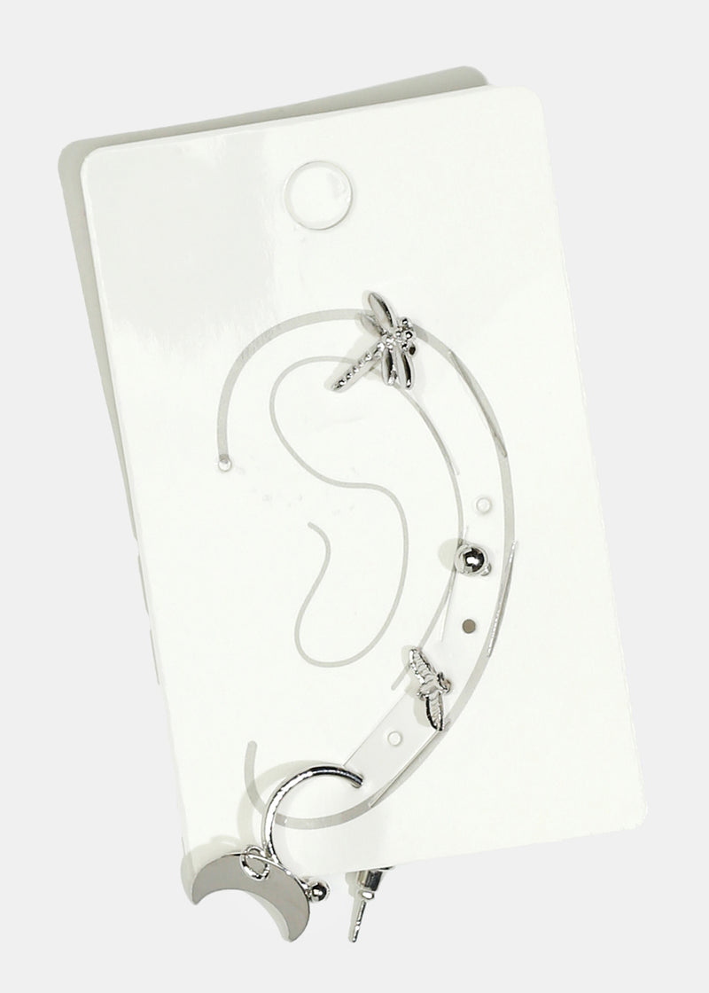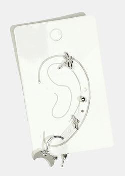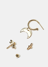 Collect this 4-piece earring set featuring insect and moon stud earrings. A unique yet stylish addition to your look!