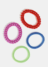 Get these 4-piece multi-size spiral hair ties featured in pretty colors! A fun and colorful addition to your hairdo!