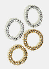 Stock up on your hair ties with this gold and silver 4-piece set. These comfortable hair ties will give you a comfortable fit and keep your hair in place.
