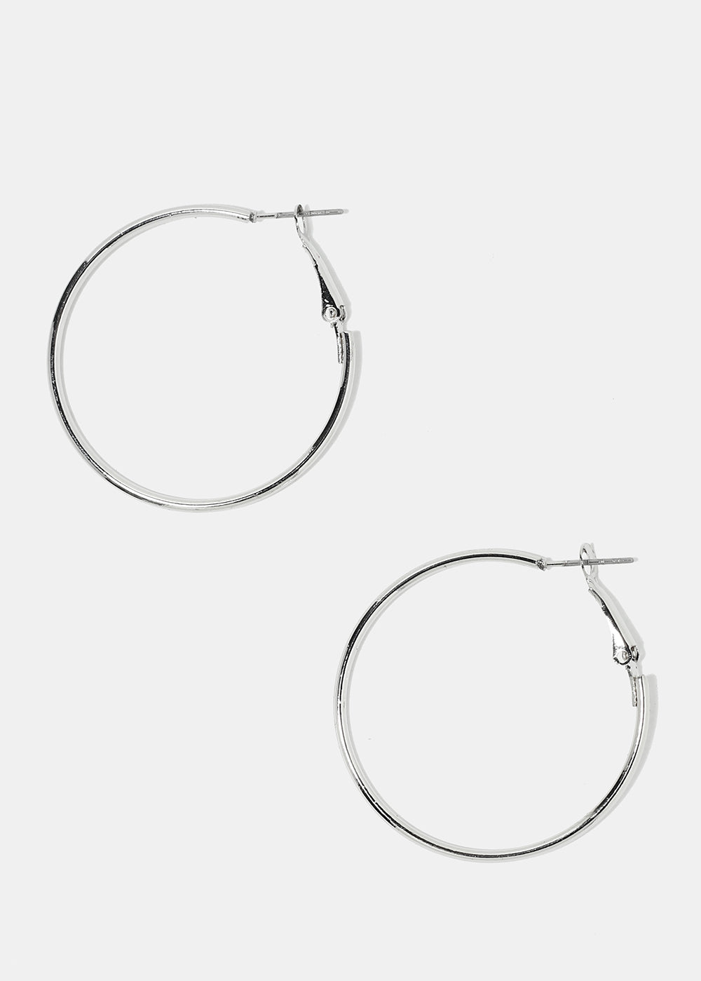 Bringing out the classics! These 40mm silver metal hoop earrings are a timeless treasure. An essential addition in your jewelry box!