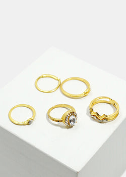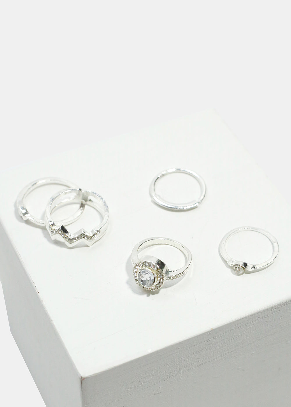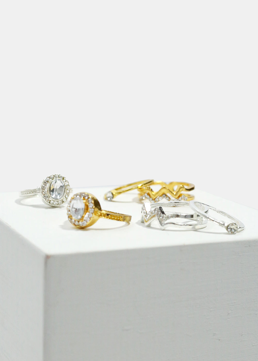 Complete your look with this 5-piece gemstone toe ring set. Wear these sparkly rings with your favorite pair of sandals or heels!