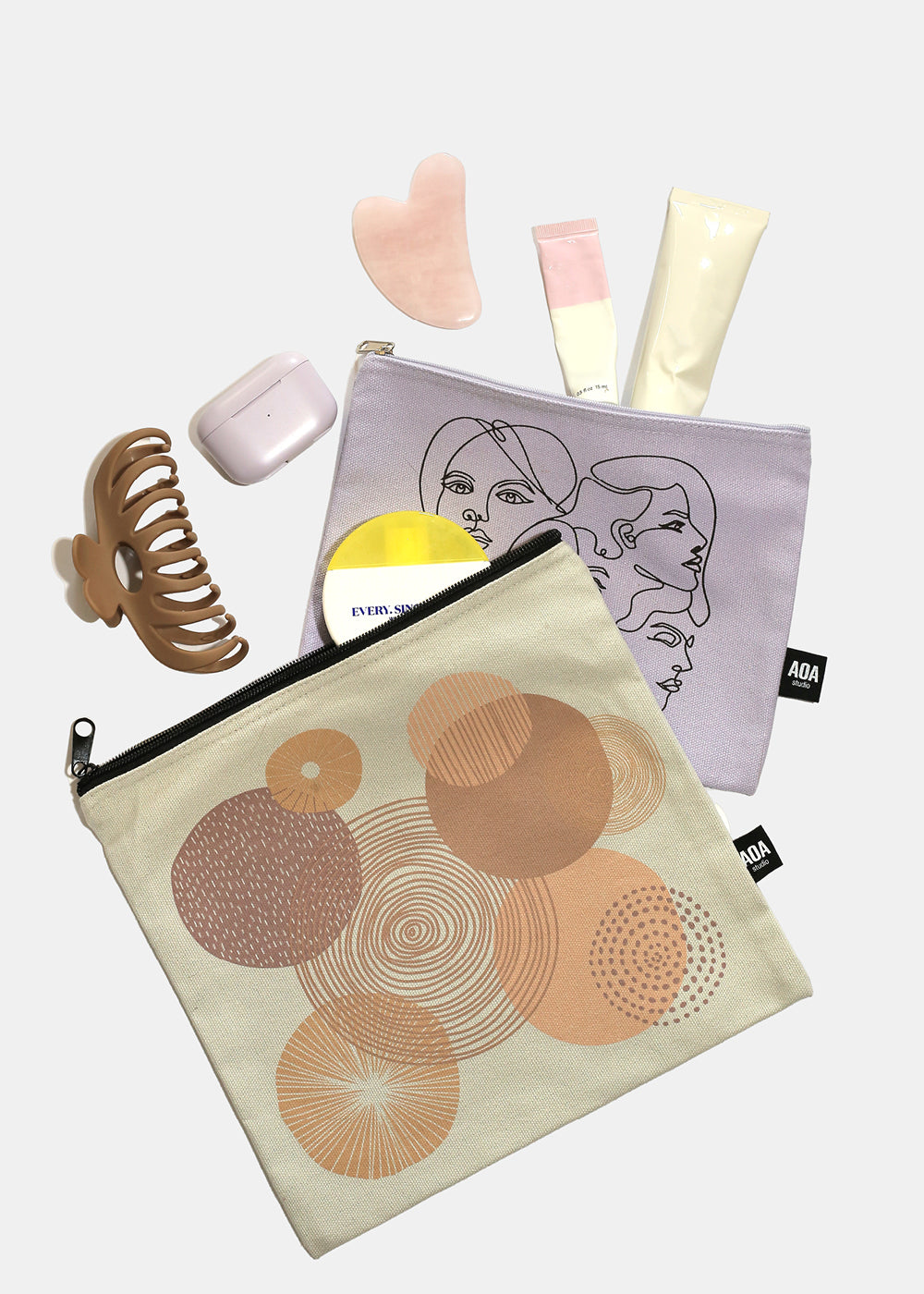 A+ Large Canvas Pouch! Super cute and high-quality cotton canvas in bold, bright colors. Large size, perfect for holding all of your essentials! This large size is perfect for long travels that can even fit your kindle or iPad!
