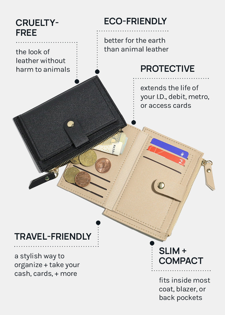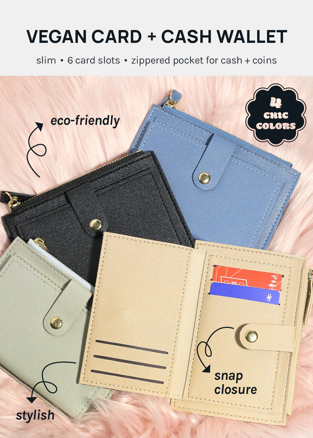 • TRAVEL-FRIENDLY a stylish way to organize + take your cash, cards, + more