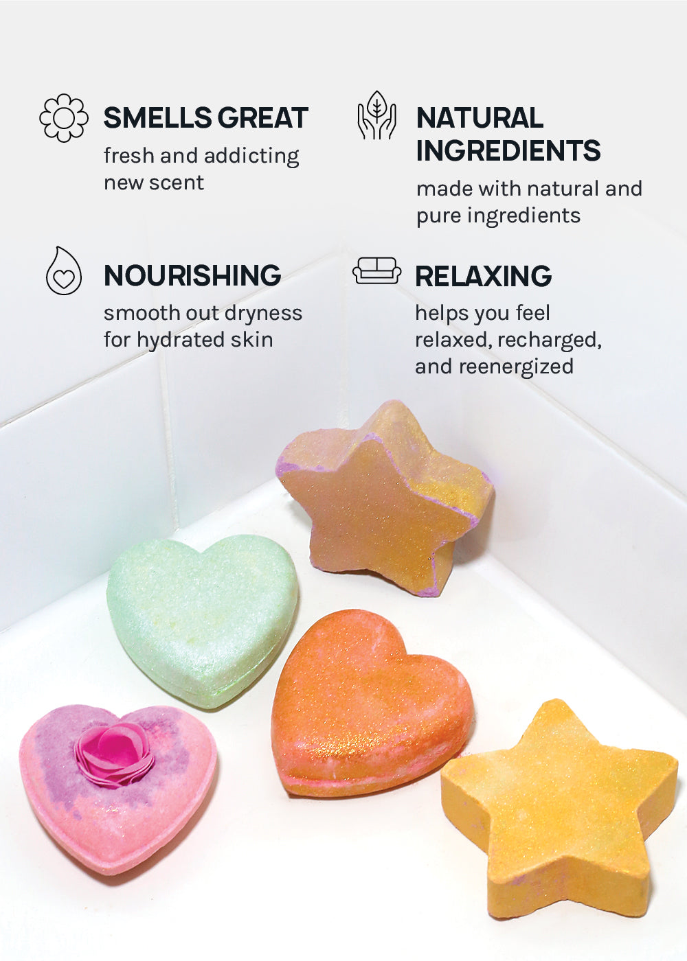 A relaxing Lavender scented bath bomb infused with Shea Butter, Sea Salt and Vitamin E, that will turn your bath experience one of the best that you've had! Start filling your tub with warm water and drop one of the bombs inside! You can also cocktail a bath bomb with a bubble bar for the ultimate experience!