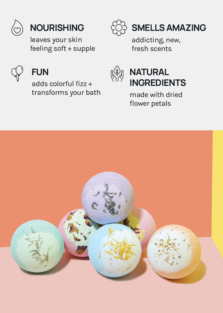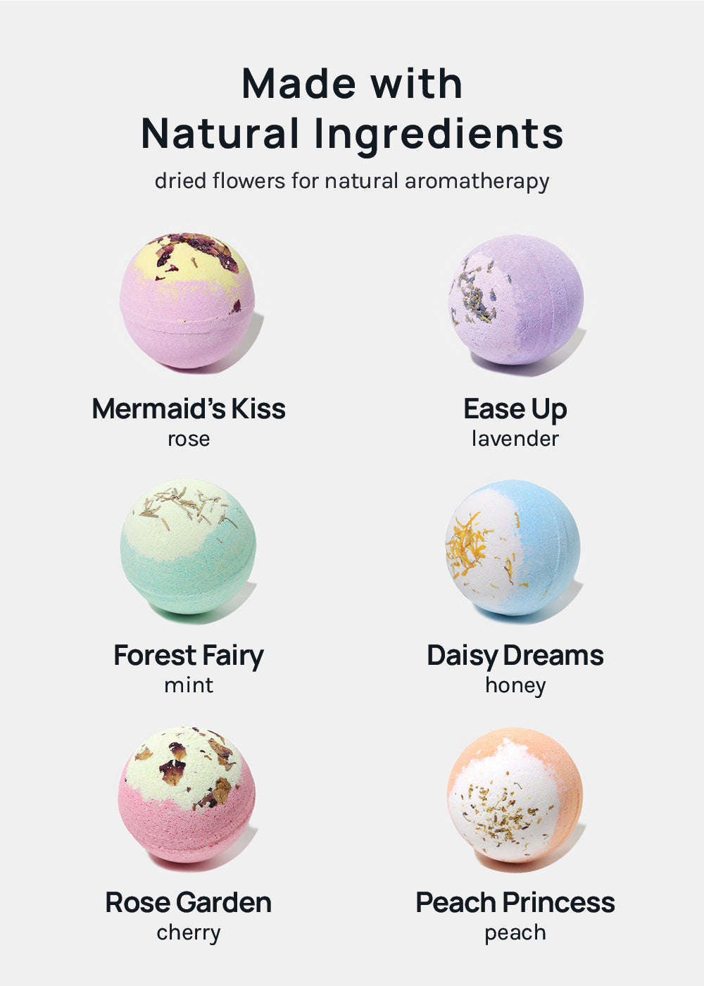 A relaxing bath bomb, that will turn your bath experience one of the best that you've had! Start filling your tub with warm water and drop one of the bombs inside! You can also cocktail a bath bomb with a bubble bar for the ultimate experience!
