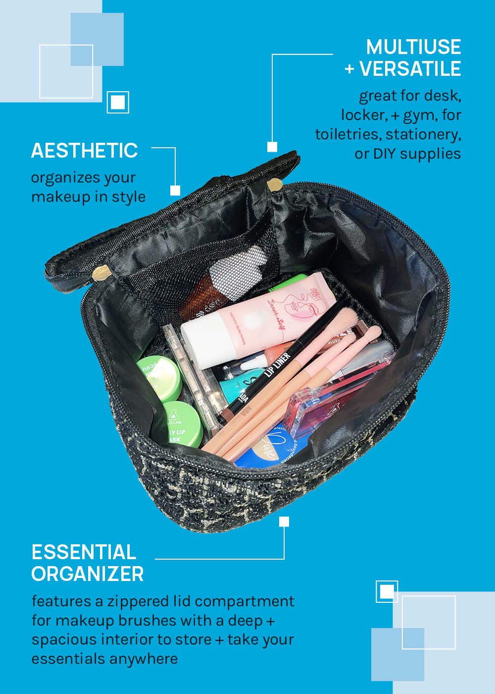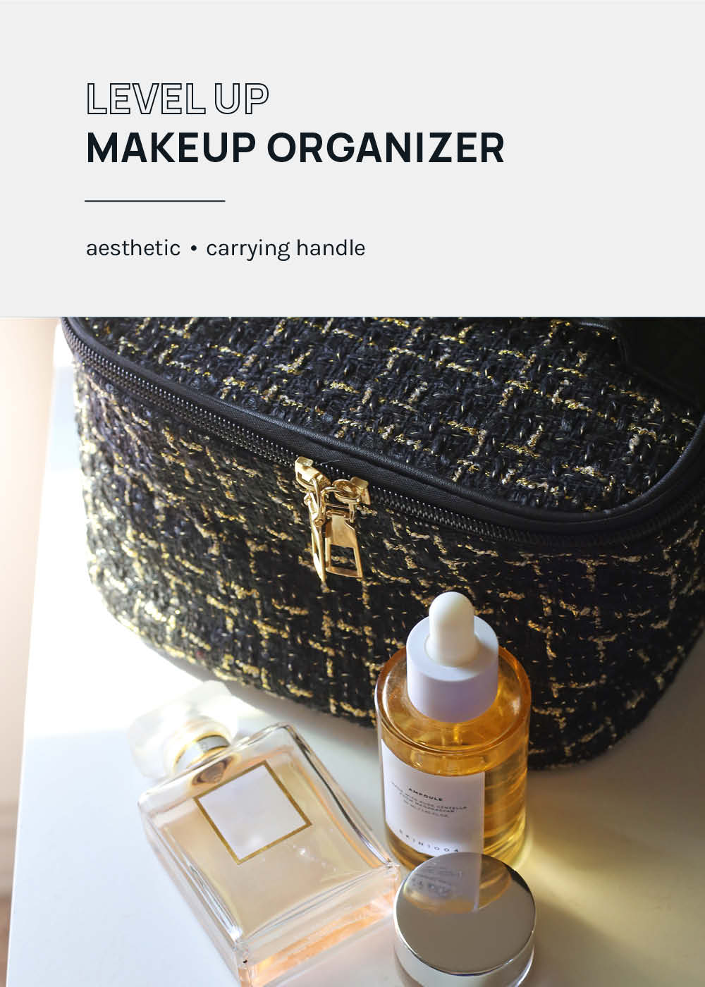 Upgrade your on-the-go organization with this Elegant Travel Vanity Case, designed for style + functionality. The deep, roomy interior provides ample space for makeup, toiletries, skincare, or DIY supplies, making it perfect for travel, your desk, locker, or gym bag. Stay organized in style with this must-have travel vanity case—perfect for makeup lovers, beauty enthusiasts, + anyone who values elegance + convenience.