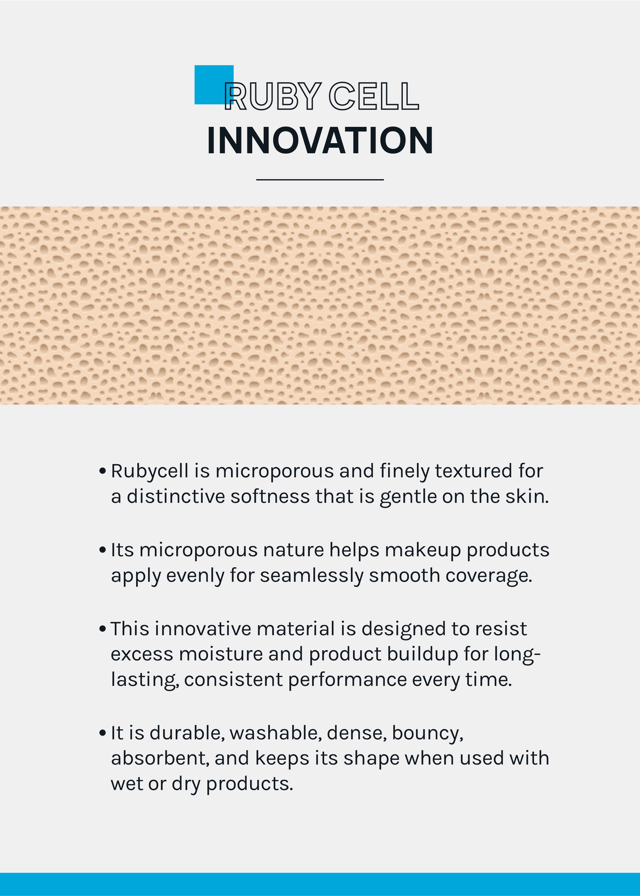 - Rubycell is microporous and finely textured for a distinctive softness that is gentle on the skin.