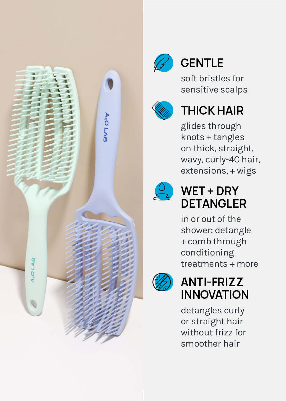 Tame tangles with ease using this Vented Detangling Brush—the ultimate tool for thick, curly, or straight hair. Designed with gentle, flexible bristles, this brush effortlessly glides through wet or dry hair, reducing breakage + minimizing frizz for a smooth, sleek finish.