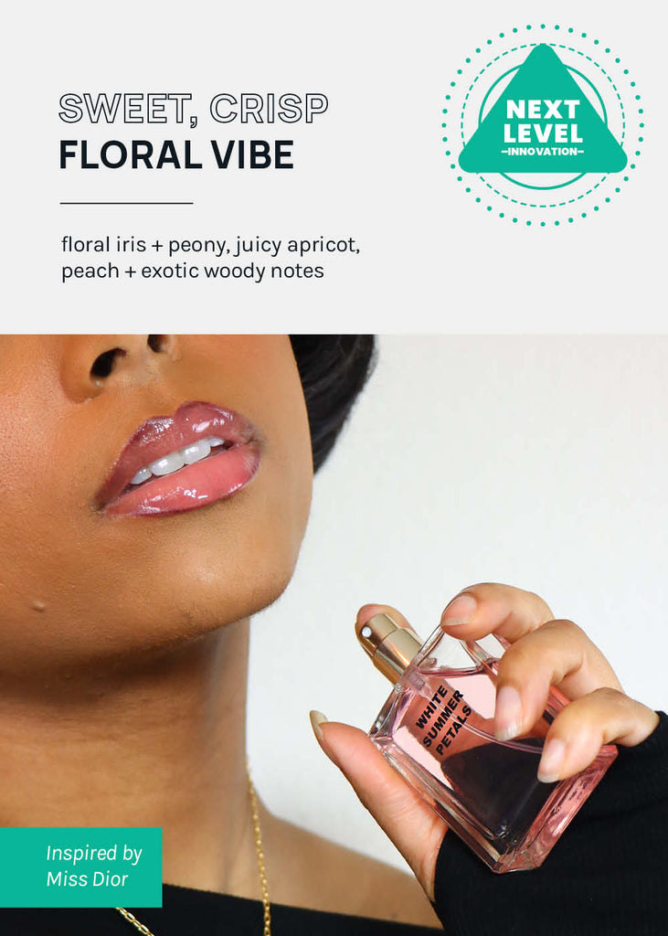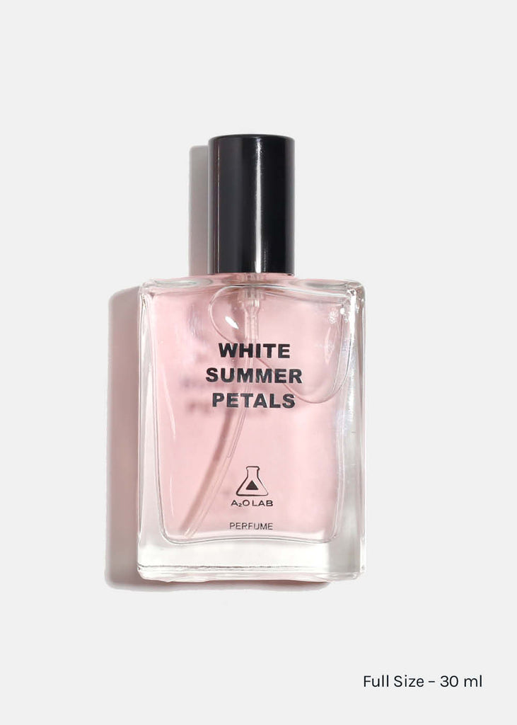 Step into a garden of elegance with a2o Lab White Summer Petals Perfume, an intoxicating blend of floral iris, delicate peony, juicy apricot, ripe peach, + exotic woody notes for a sweet, crisp, + undeniably feminine vibe. The fragrance opens with a burst of luscious fruit, while soft florals add a romantic, airy charm. A touch of warm woods lingers in the background, creating depth + sophistication for a long-lasting, unforgettable scent.