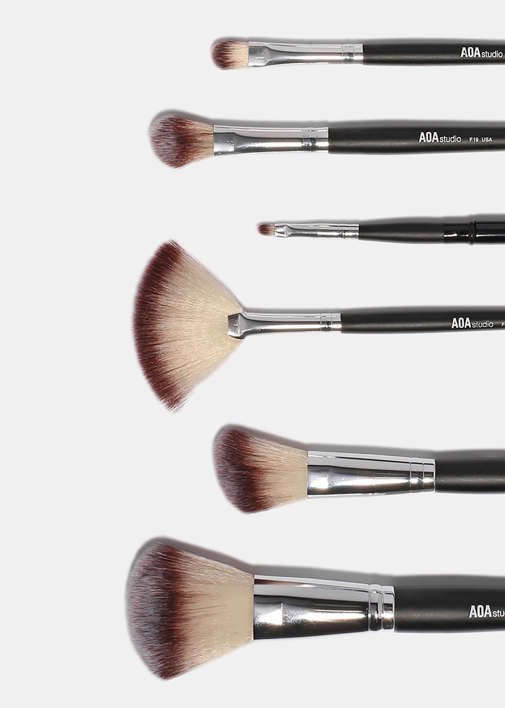 - F17: Small Fan Brush Add strong highlights to your cheekbones, nose, forehead, and chin with this!