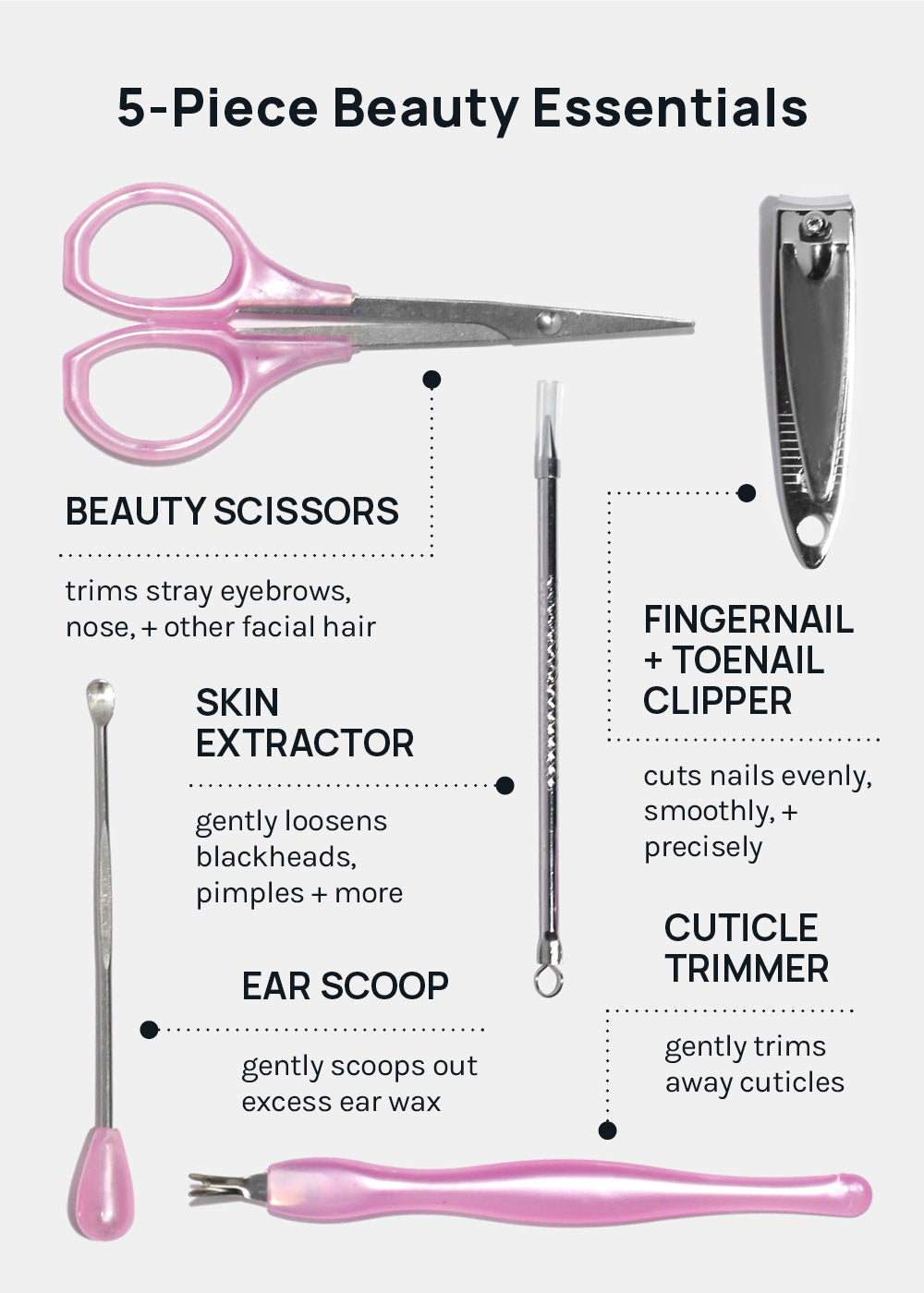 Our essential Beauty Details Set has everything you need for personal care. Groom + clean your ears, skin, + nails with this all-in-one set for easy beauty maintenance at home.
